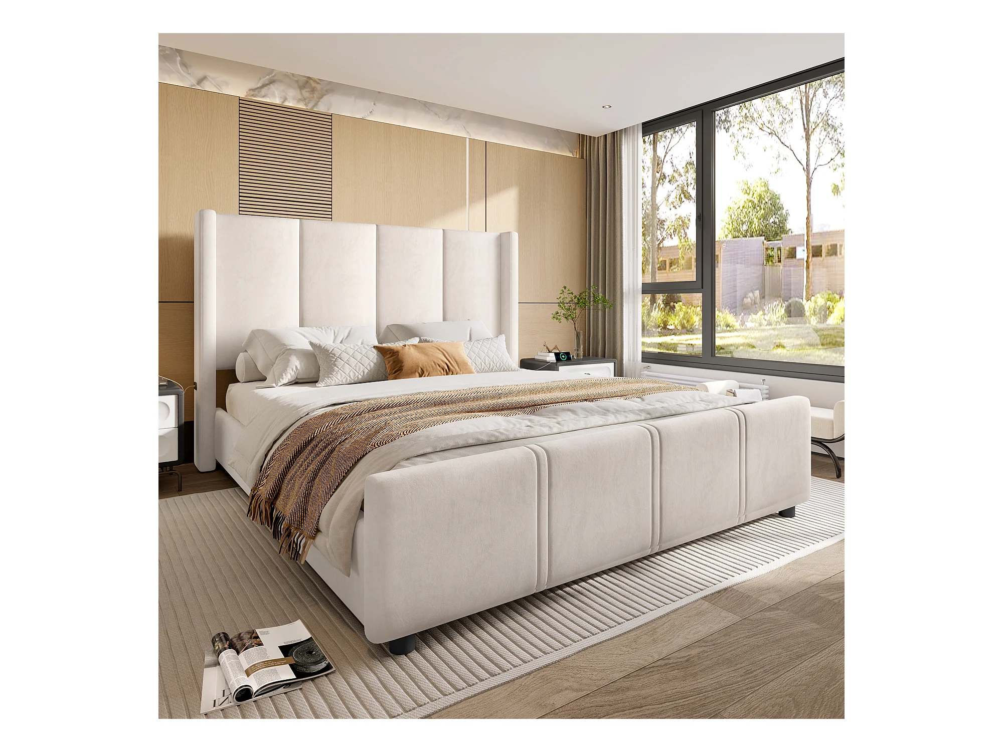 Fluweel Bed "Manon" Beige 160 x 200 cm - Tijdloze elegantie en ruim comfort