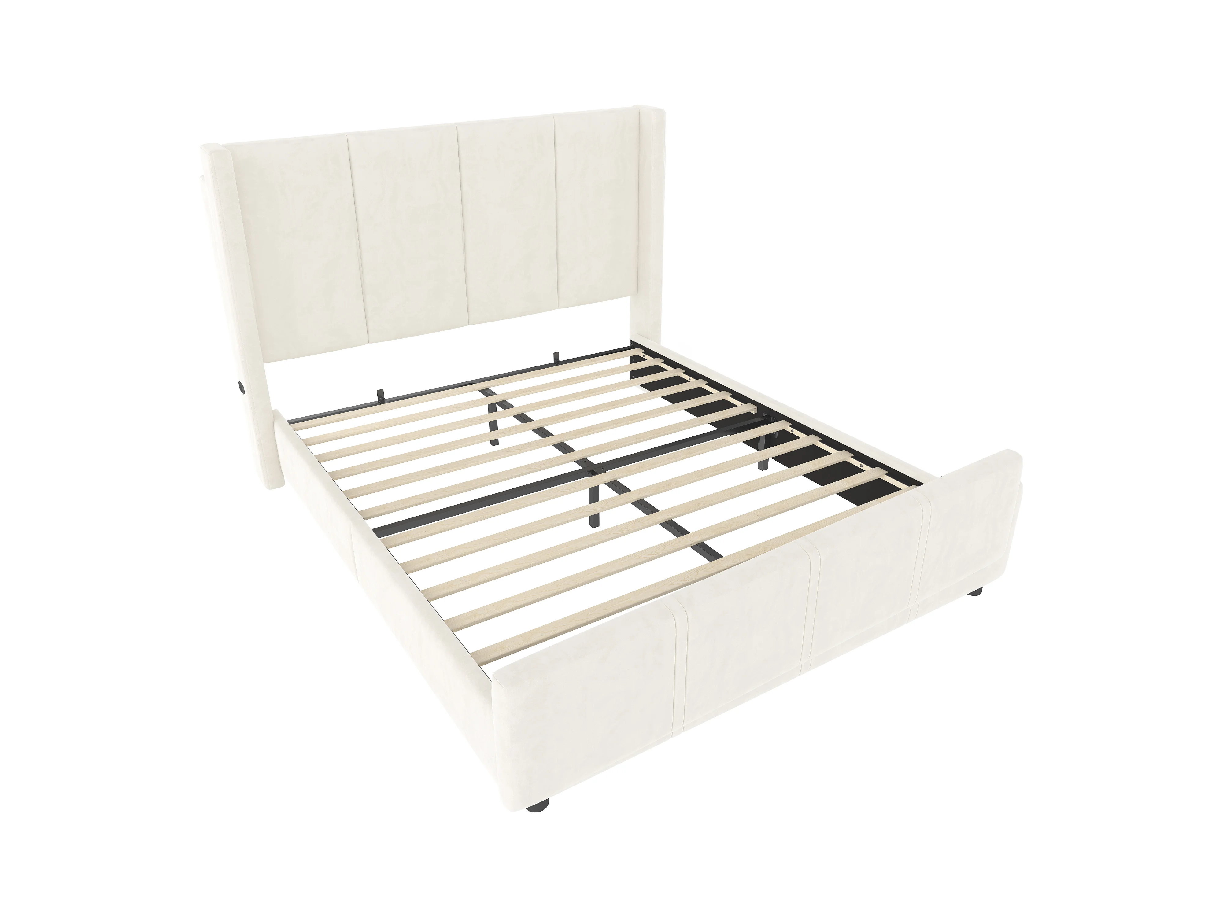 Tweepersoonsbed 160x200 cm in beige fluweel met hoofdeinde en lattenbodem (zonder matras)
