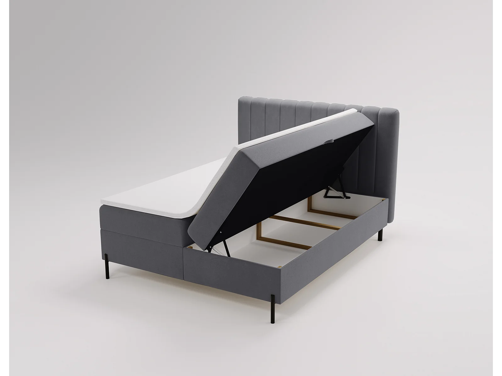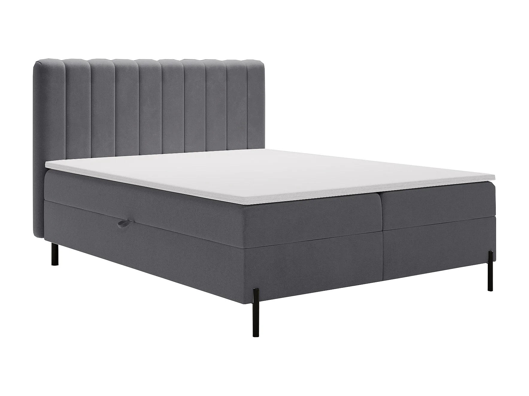 Tweepersoonsbed 160x200 Florence Box, gestoffeerd bed met opbergruimte - bed met matras en topper, grijs (Komodo 21)