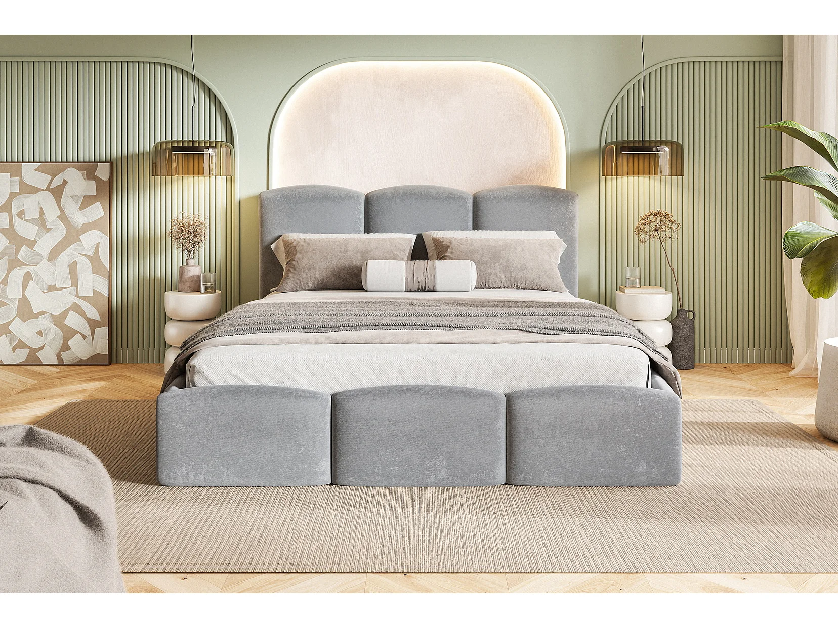 Tweepersoonsbed 200x200 Roma Slim met opbergruimte, metalen lattenbodem - Velvet Lichtgrijs (Amor Velvet 4318)