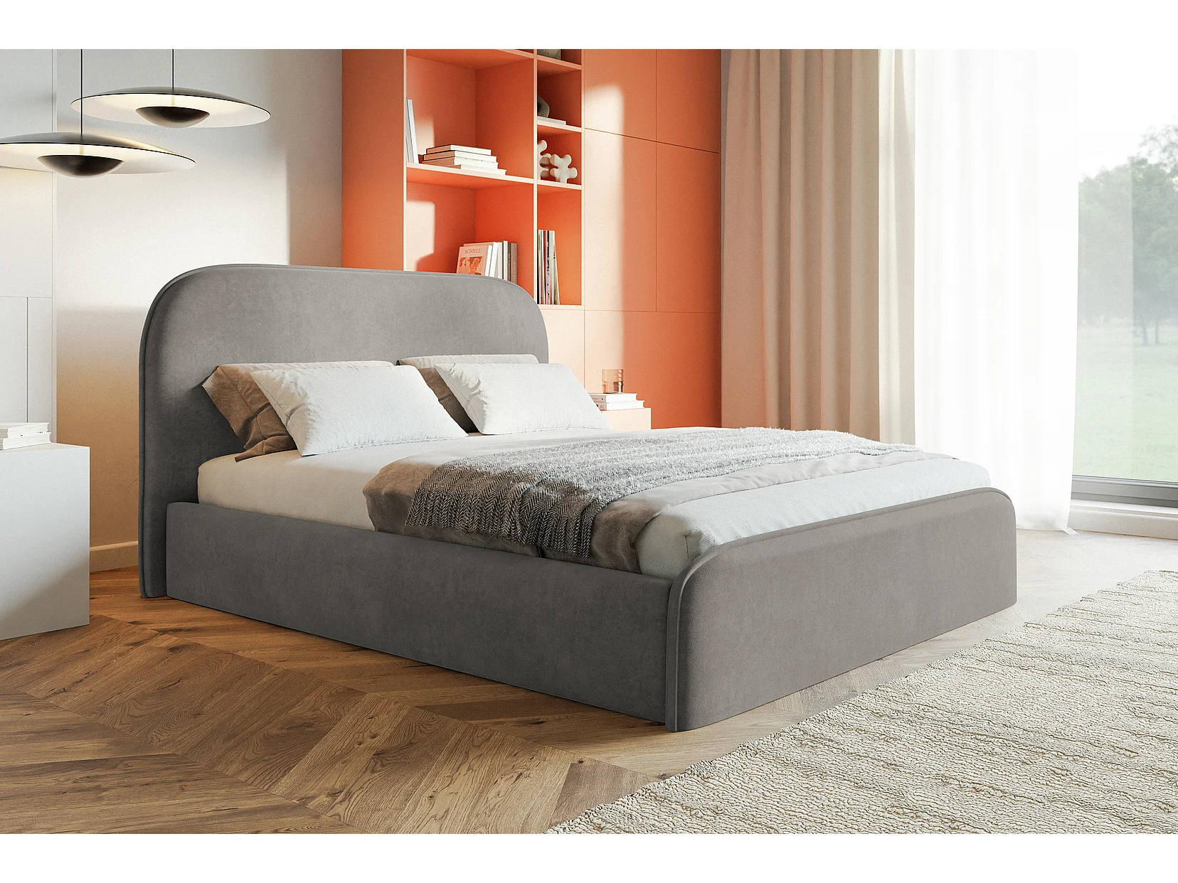 Tweepersoonsbed 200x200 Wendra met metalen lattenbodem - hoofdbord, opbergruimte - Lichtgrijs (Amor Velvet 4318)