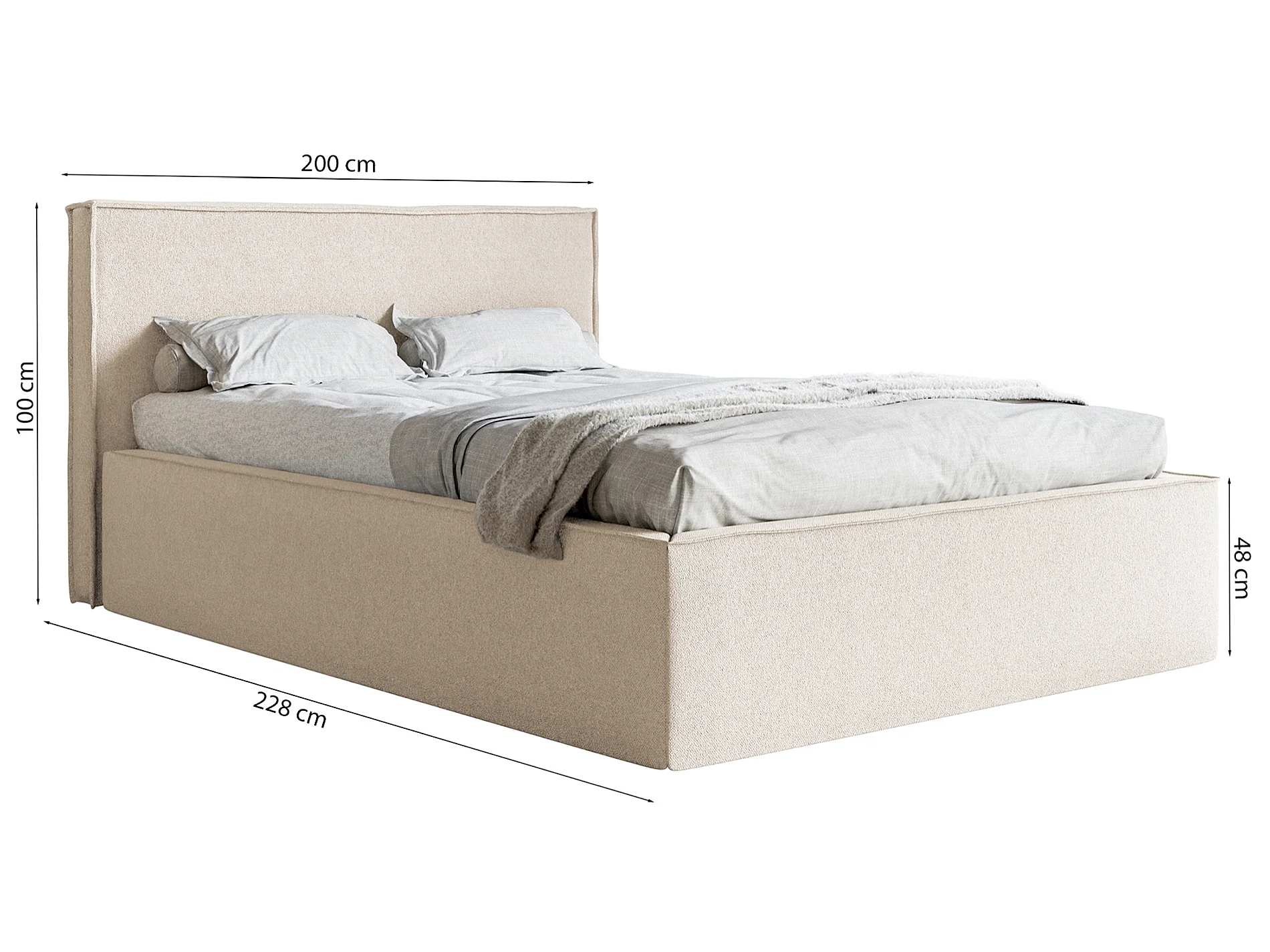 Tweepersoonsbed gestoffeerd - 180x200 cm - in grijs fluweel - LUCERA