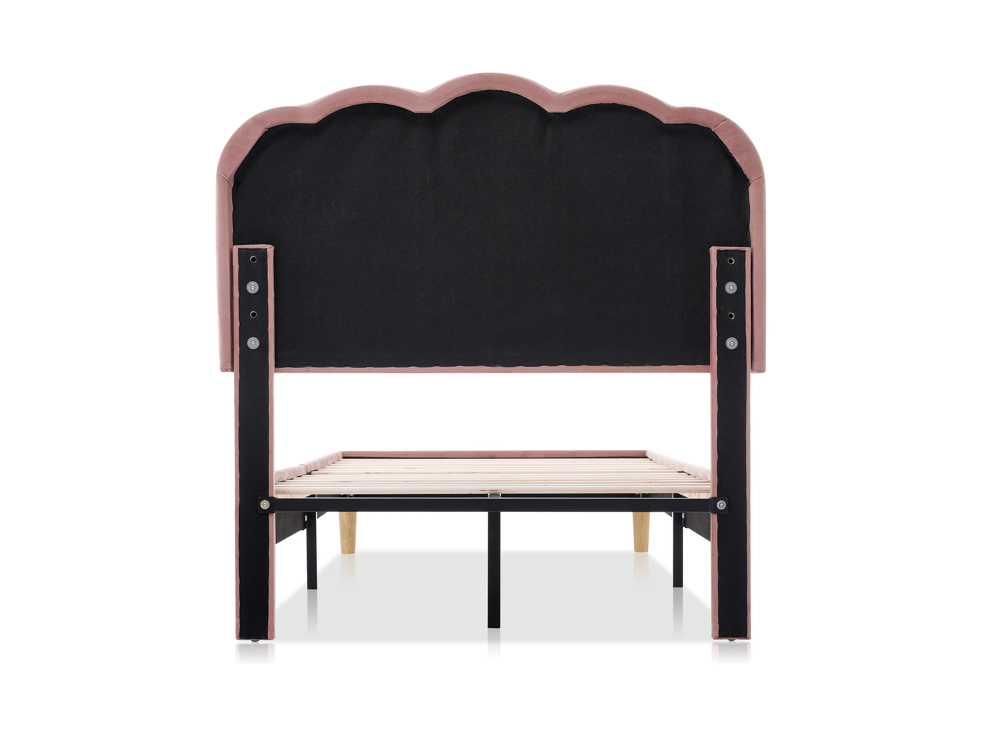 Eenpersoonsbed 90x190 cm met LED-hoofdbord, met verstelbaar hoofdbord, muzikale sfeer, fluweel, roze (zonder matras)