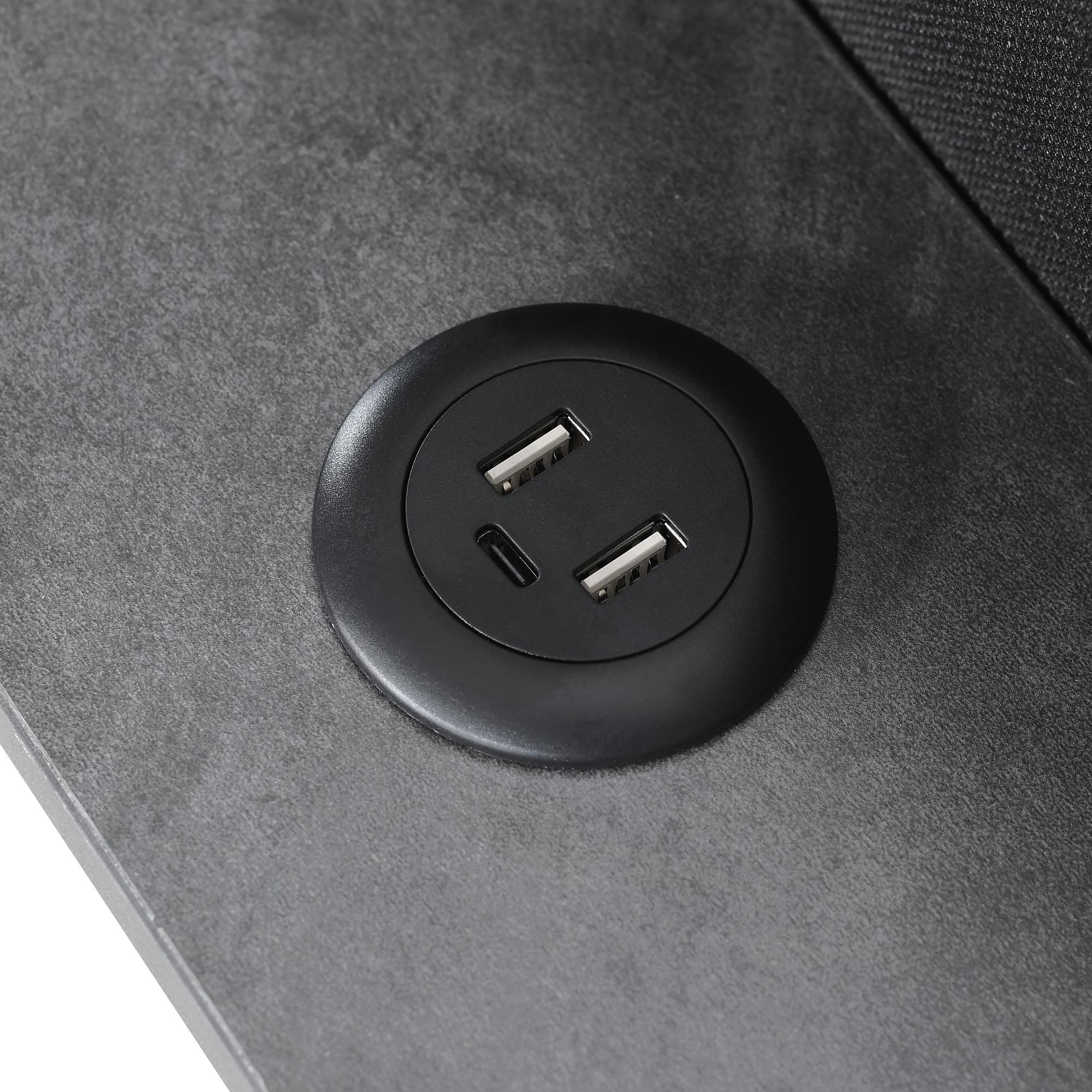 Tweepersoonsbed 140x200 cm met LED, 4 lades, USB Type C en verstelbaar hoofdeinde, grijs linnen (209x149x104 cm)