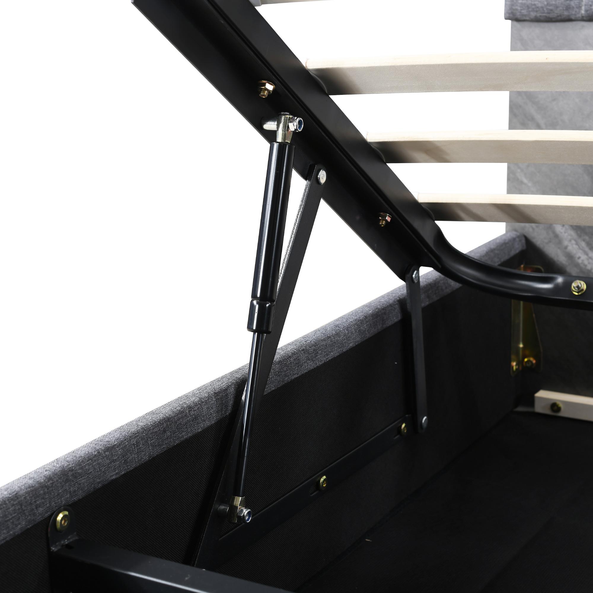 Tweepersoonsbed met verstelbaar hoofdeinde, hydraulische opbergruimte, grijs linnen (145x217x113 cm)