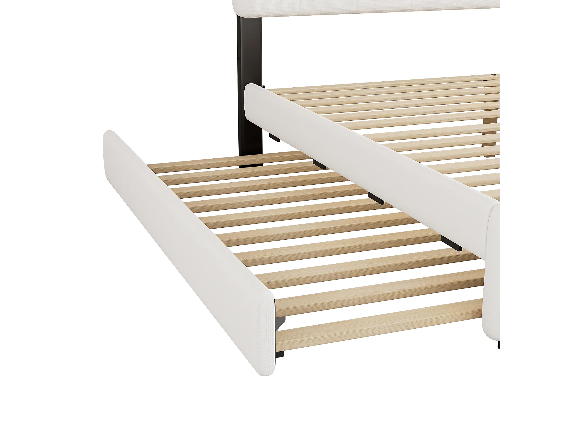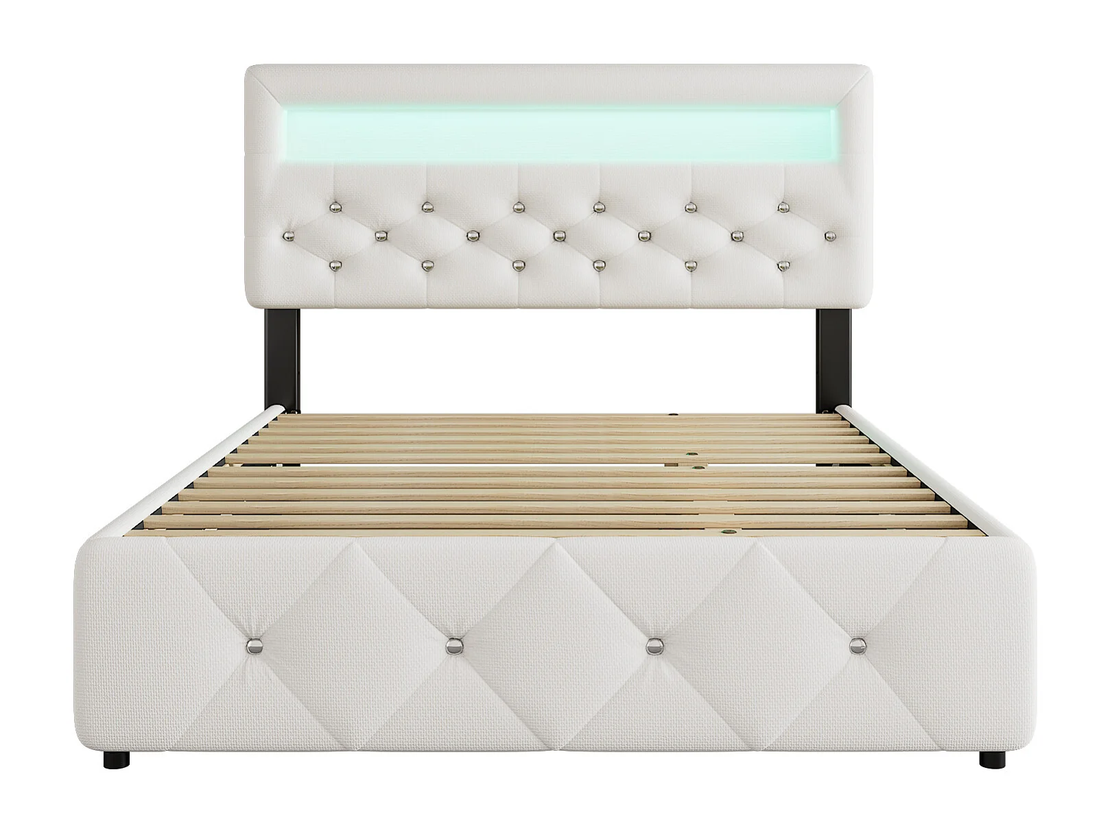 Tweepersoonsbed voor volwassenen 140x200 cm met 2 lades - LED-uitschuifbed met in hoogte verstelbaar hoofdeinde - linnen - wit (zonder matras)