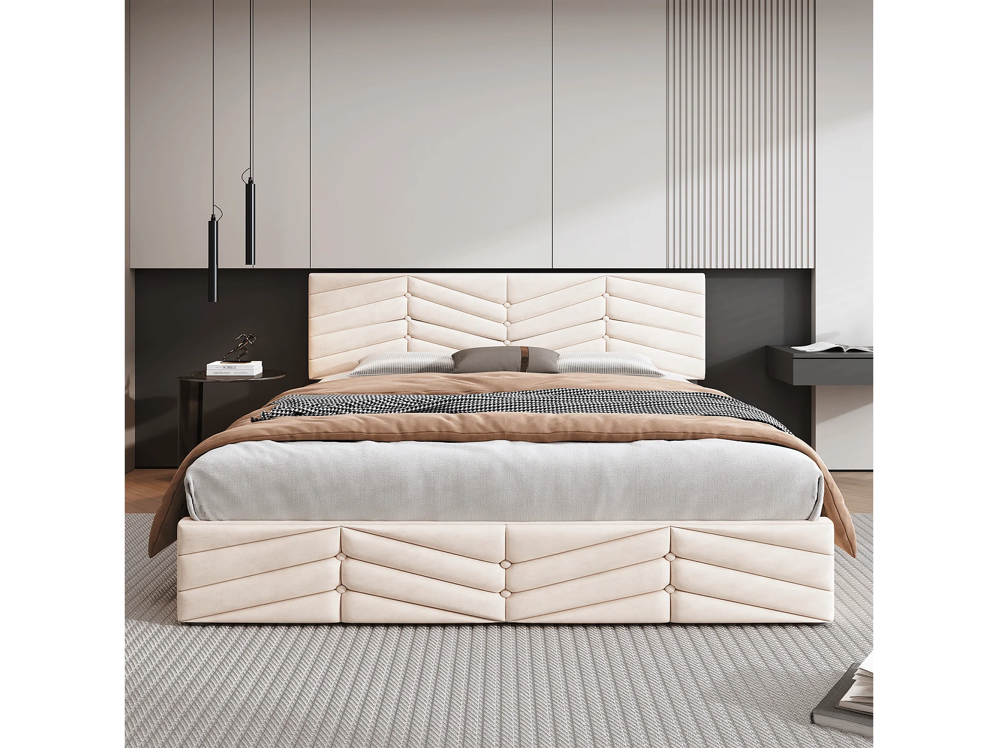 Tweepersoonsbedden - 140x200 cm - Polsterbed Met Stauraum Onder Bed - Comfortabel En Ruimtelijk Voor Slaapkamer - Fluweel - Beige
