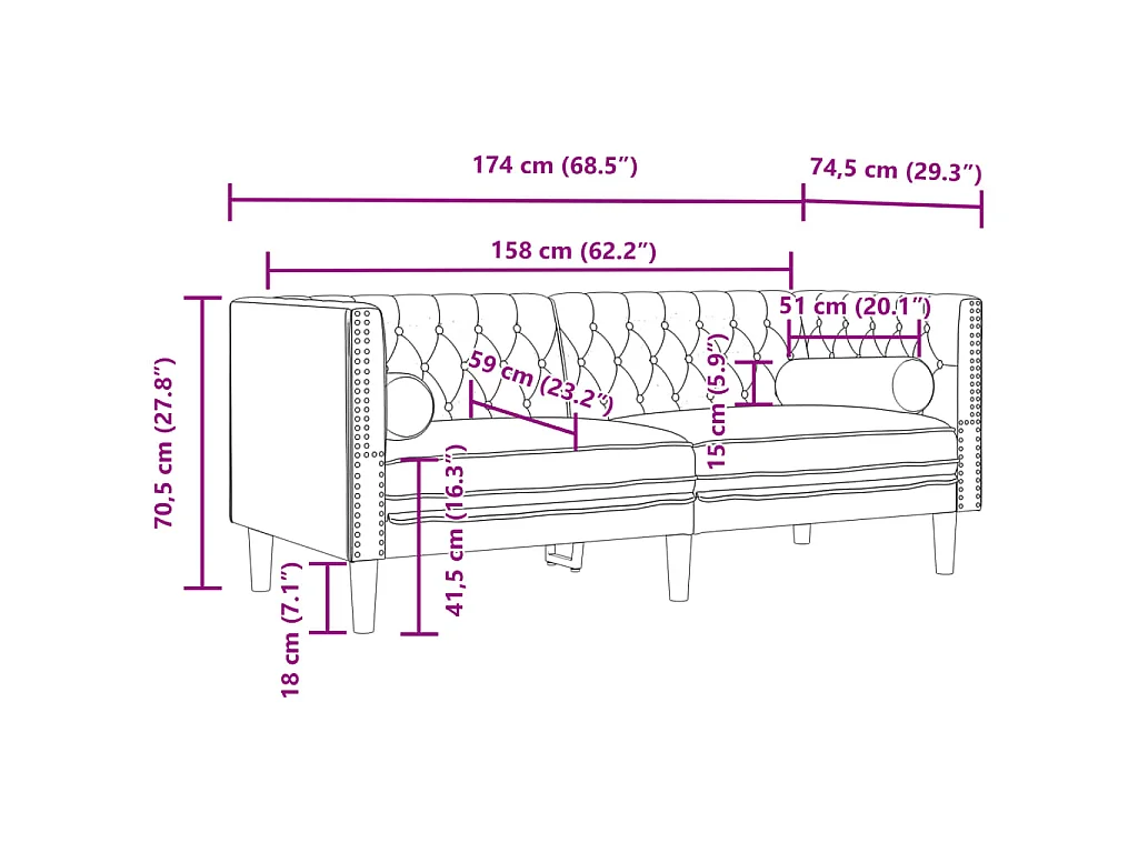 Tweezitsbank Chesterfield-stijl en bolsters fluweel lichtgrijs