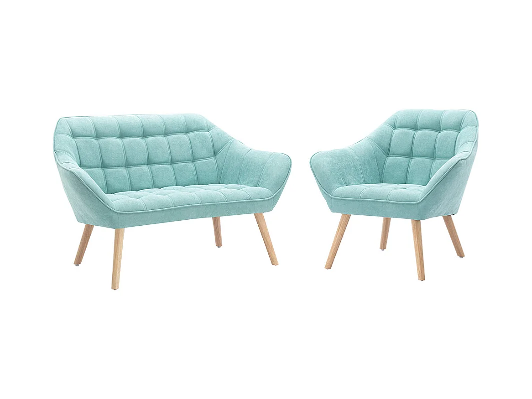 Tweezitsbank en fauteuil CASERTA - Stof - Blauwgroen