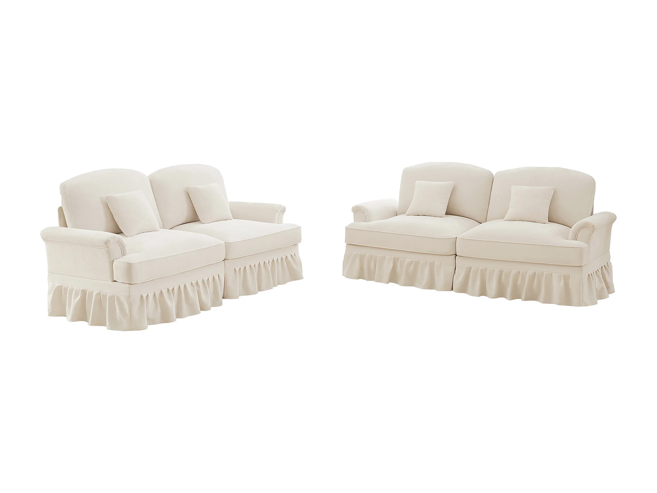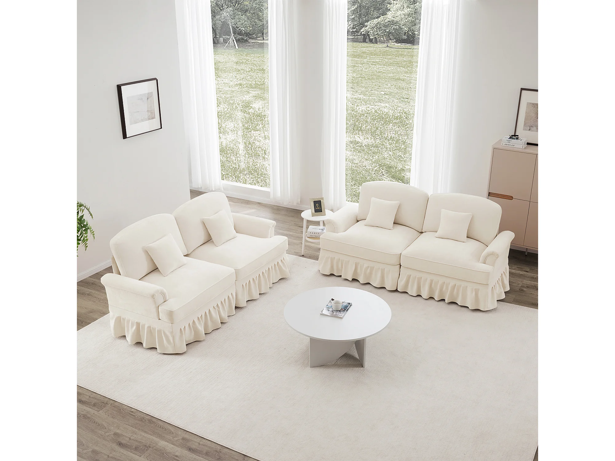 Tweezitsbank Modulair Twee Designs Afneembare Rokken Chenille Wit