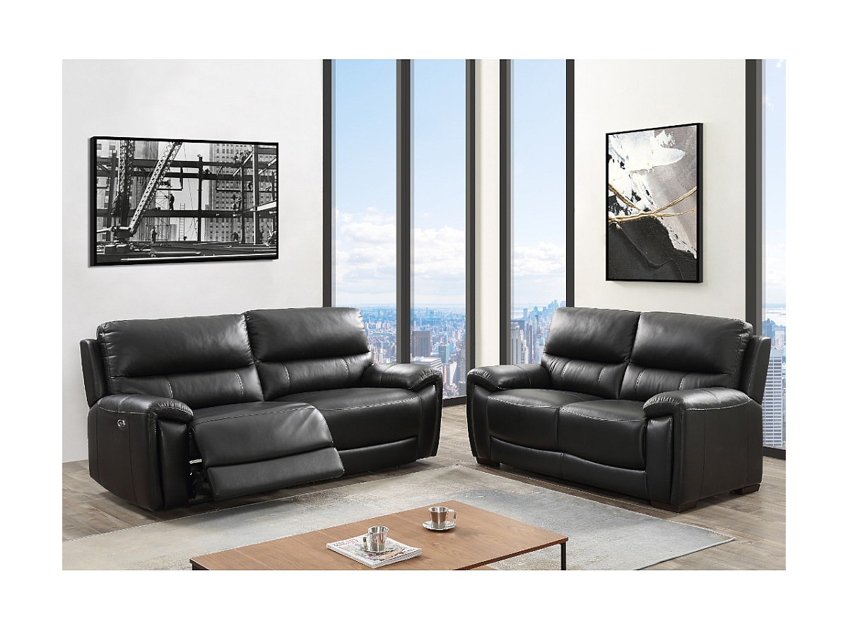 Tweezitsbank van leer CARLOS - Zwart