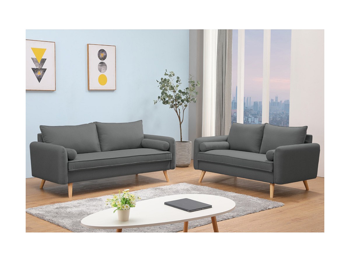 Tweezitsbank van stof RAPAZAN - Antraciet