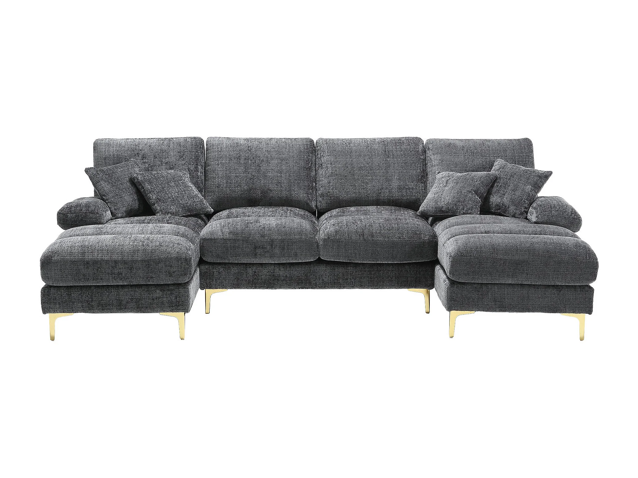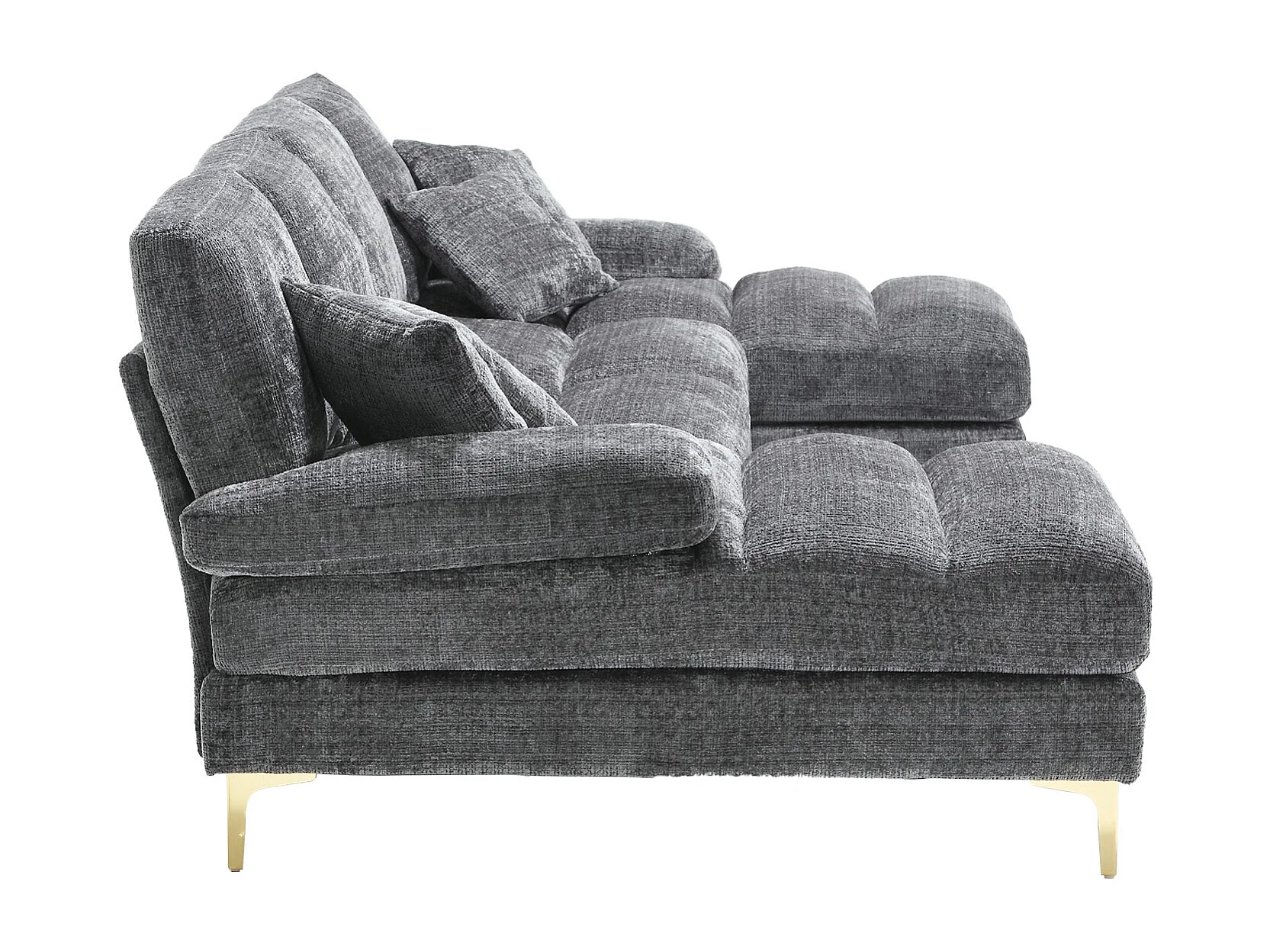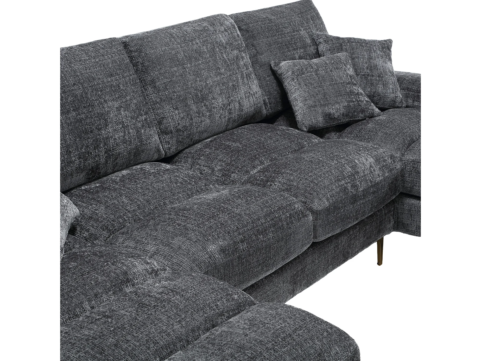 U-vormige bank, grijze chenille, gestoffeerde bank met kussens en 2 sierkussens, geschikt voor woonkamer en slaapkamer