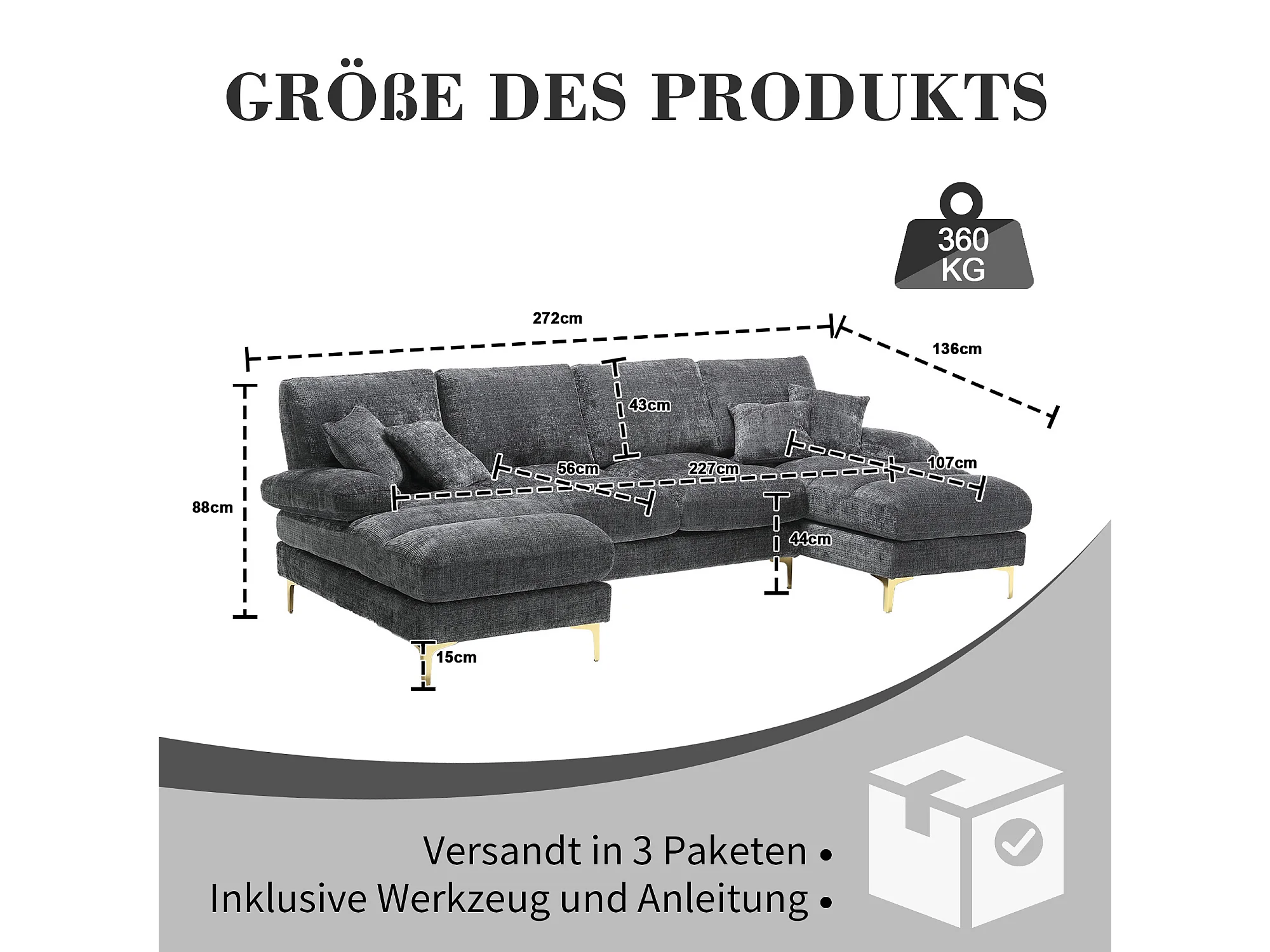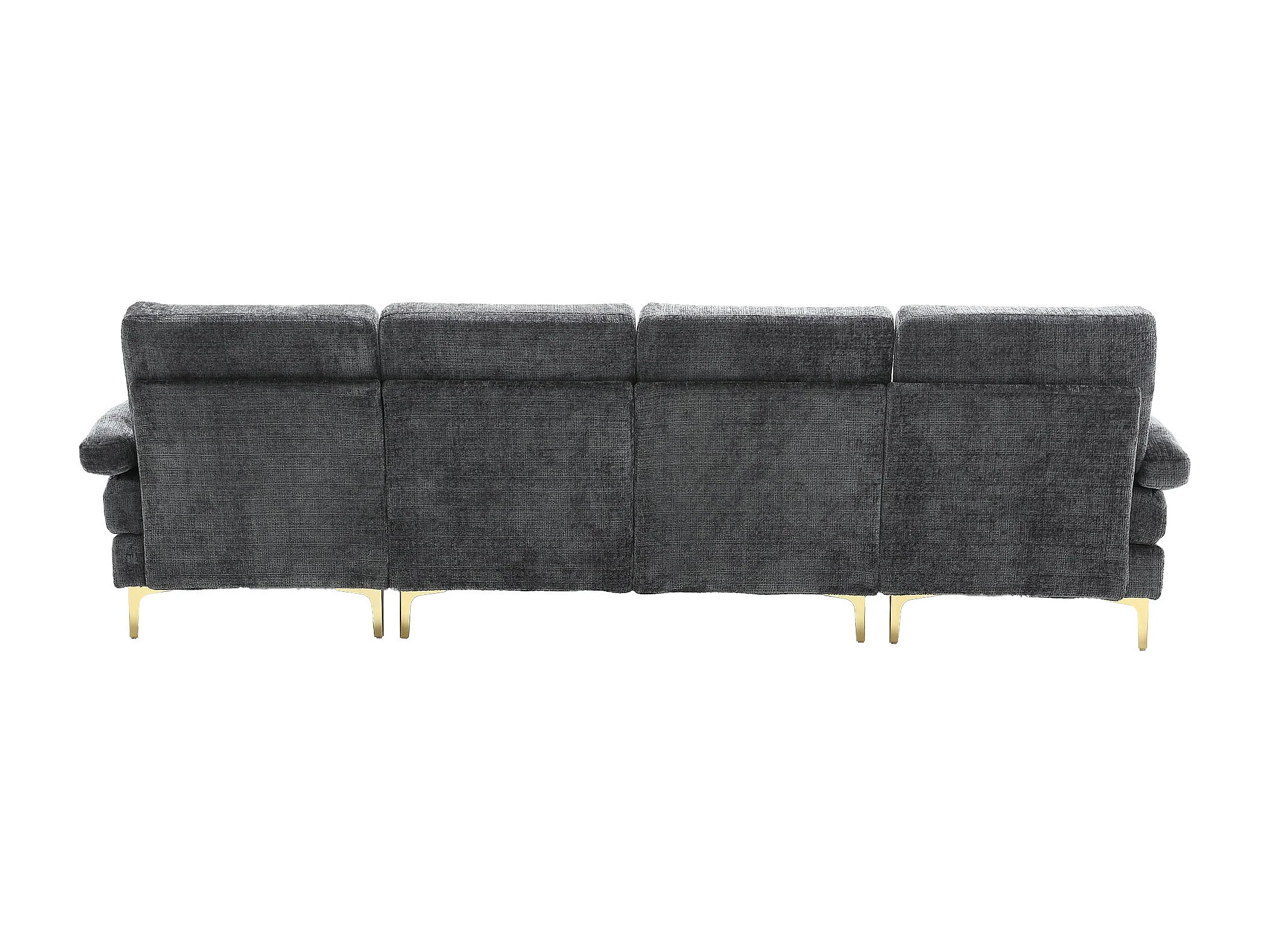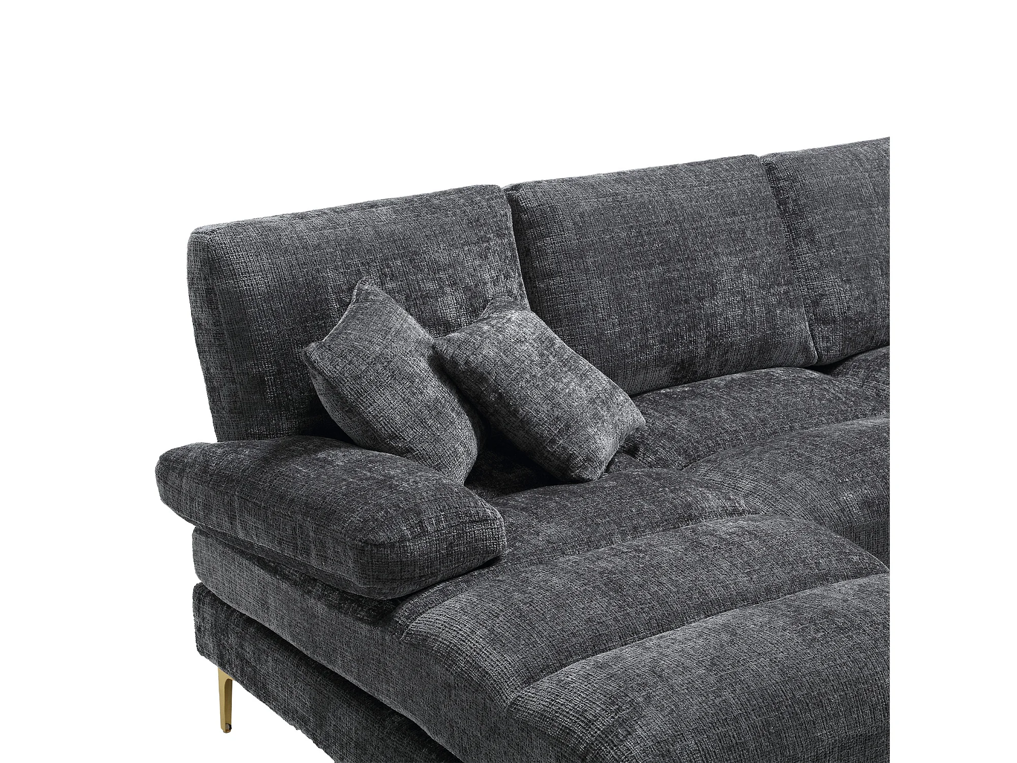 U-vormige bank, grijze chenille, gestoffeerde bank met kussens en 2 sierkussens, geschikt voor woonkamer en slaapkamer
