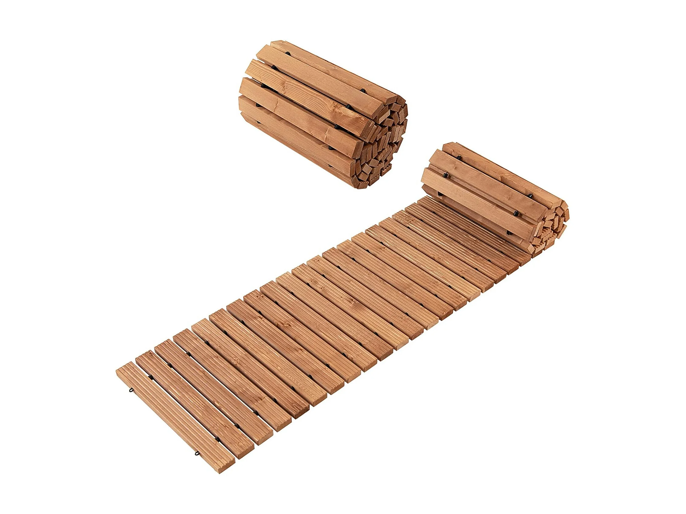 Uitrolbare houten tuinpad | 245 cm | rolweg met staaldraad, tuinpad voor tuin, achtertuin (breedte 43 cm) ZB32813