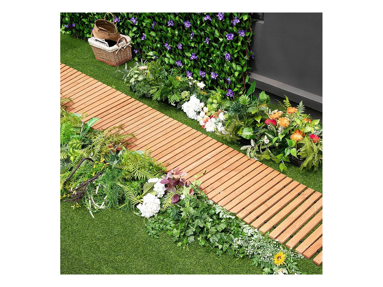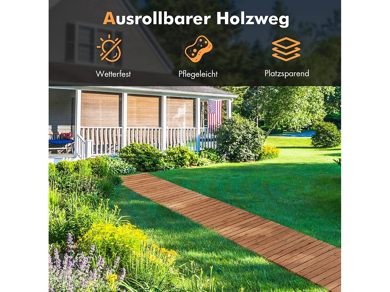 Uitrolbare houten tuinpad | 245 cm | rolweg met staaldraad, tuinpad voor tuin, achtertuin (breedte 43 cm) ZB32813
