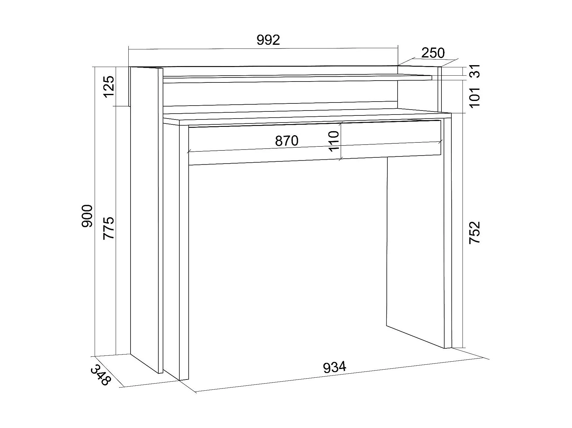 Uitschuifbaar Bureau, 99x90x35cm, intrekbaar, Computer Table, Gemarmerd wit