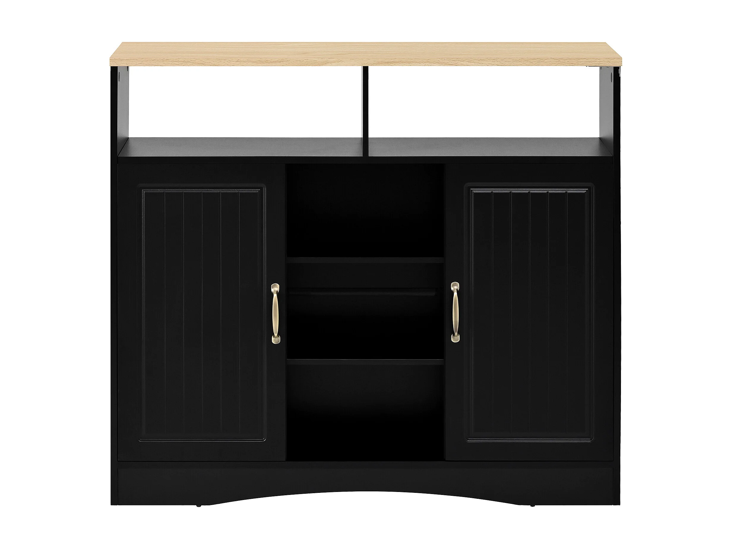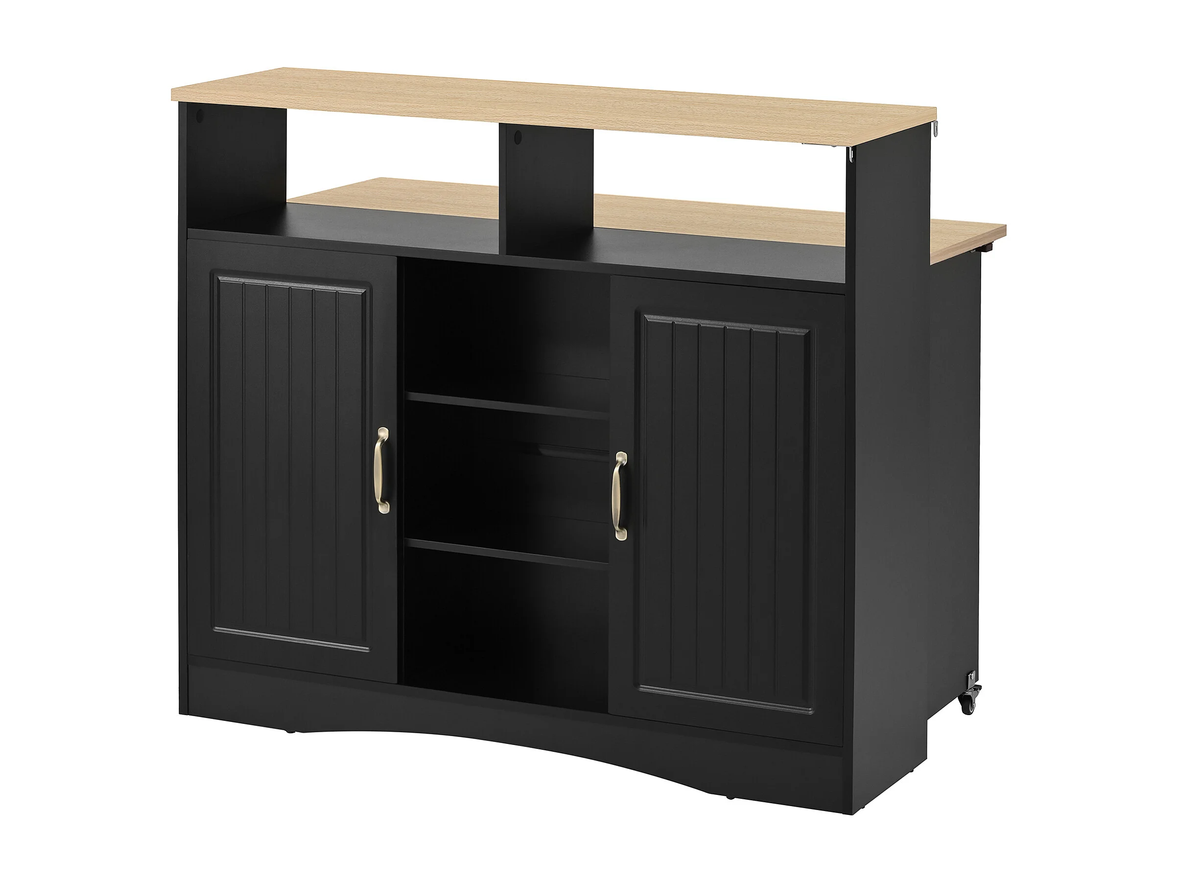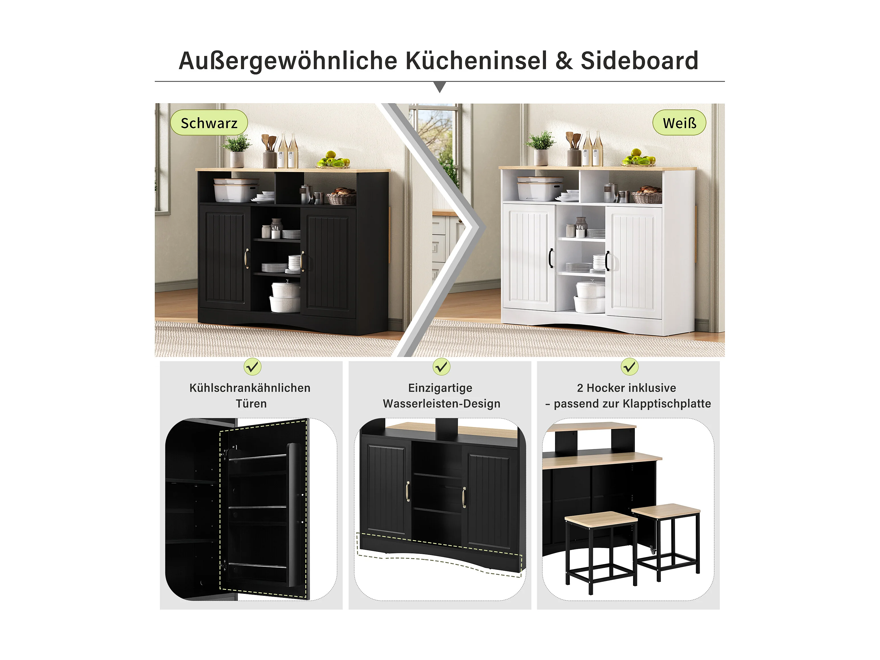 Uitschuifbaar keukeneiland op wielen - 110 x 34 x 97,5 cm - met opbergruimte + 2 krukken - MDF - zwart