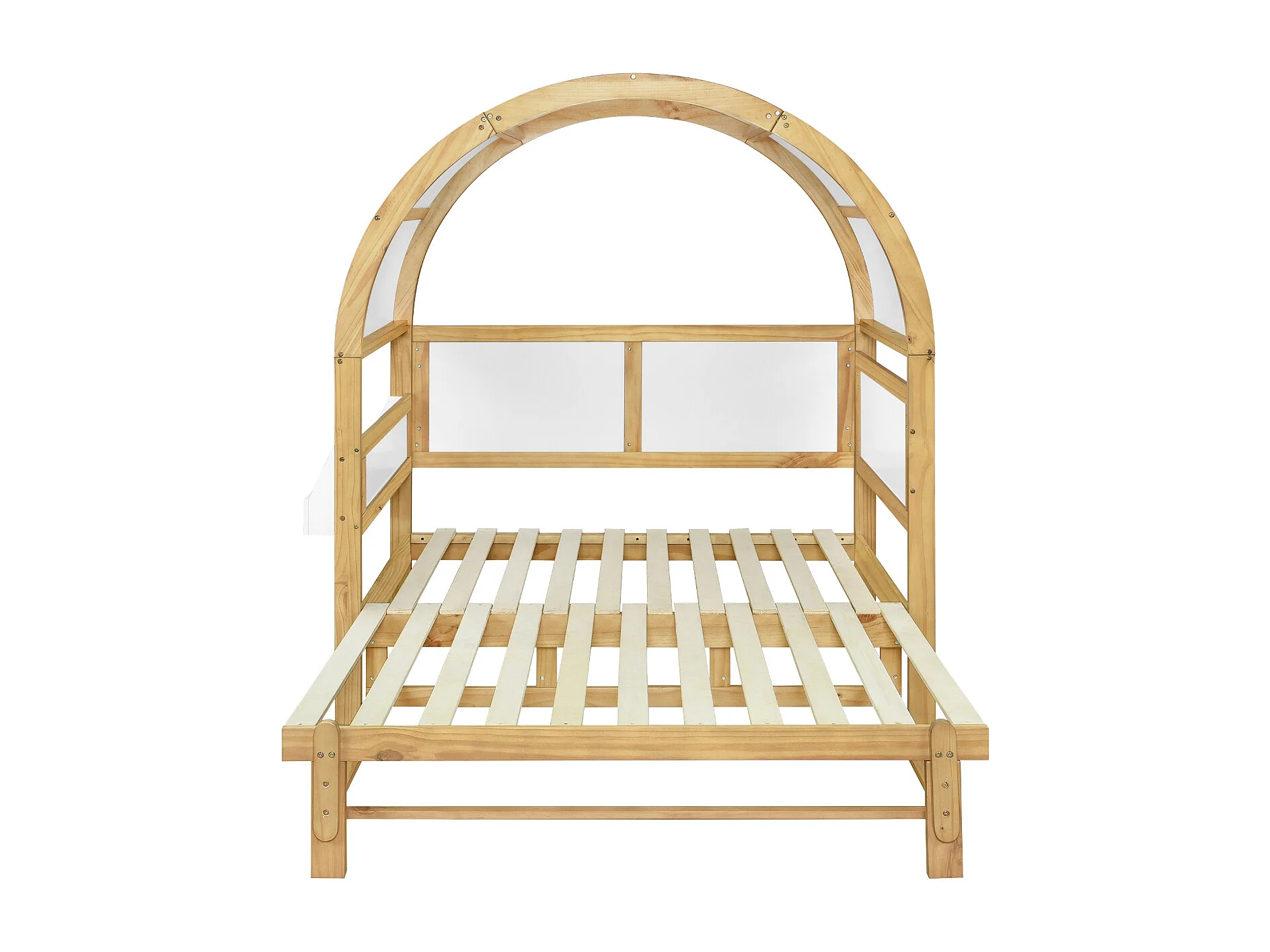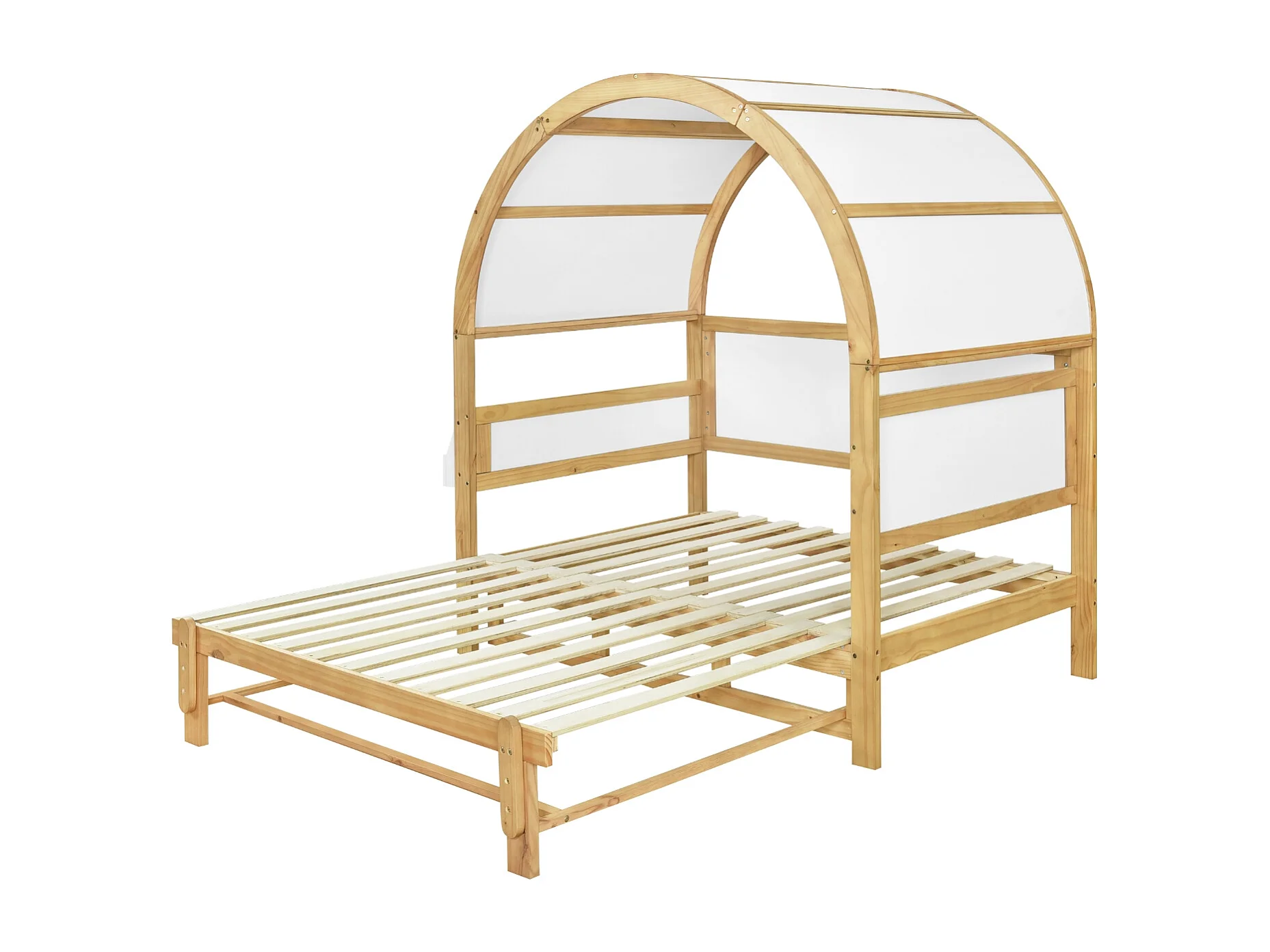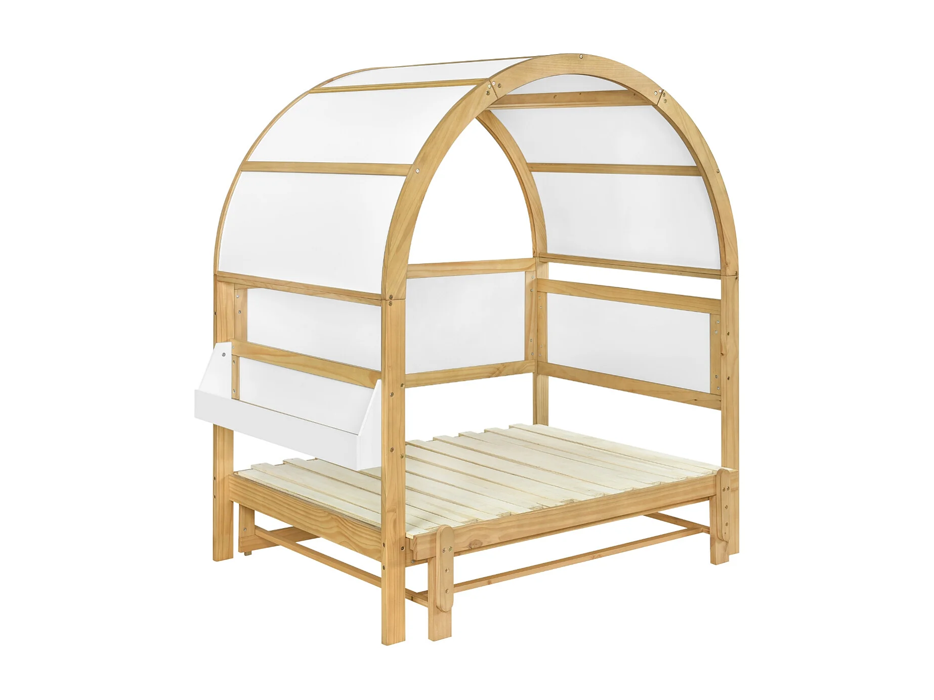 Uitschuifbaar kinderbed in kajuitvorm 140x100/200 cm met opbergruimte aan de zijkant - Wit en licht naturel