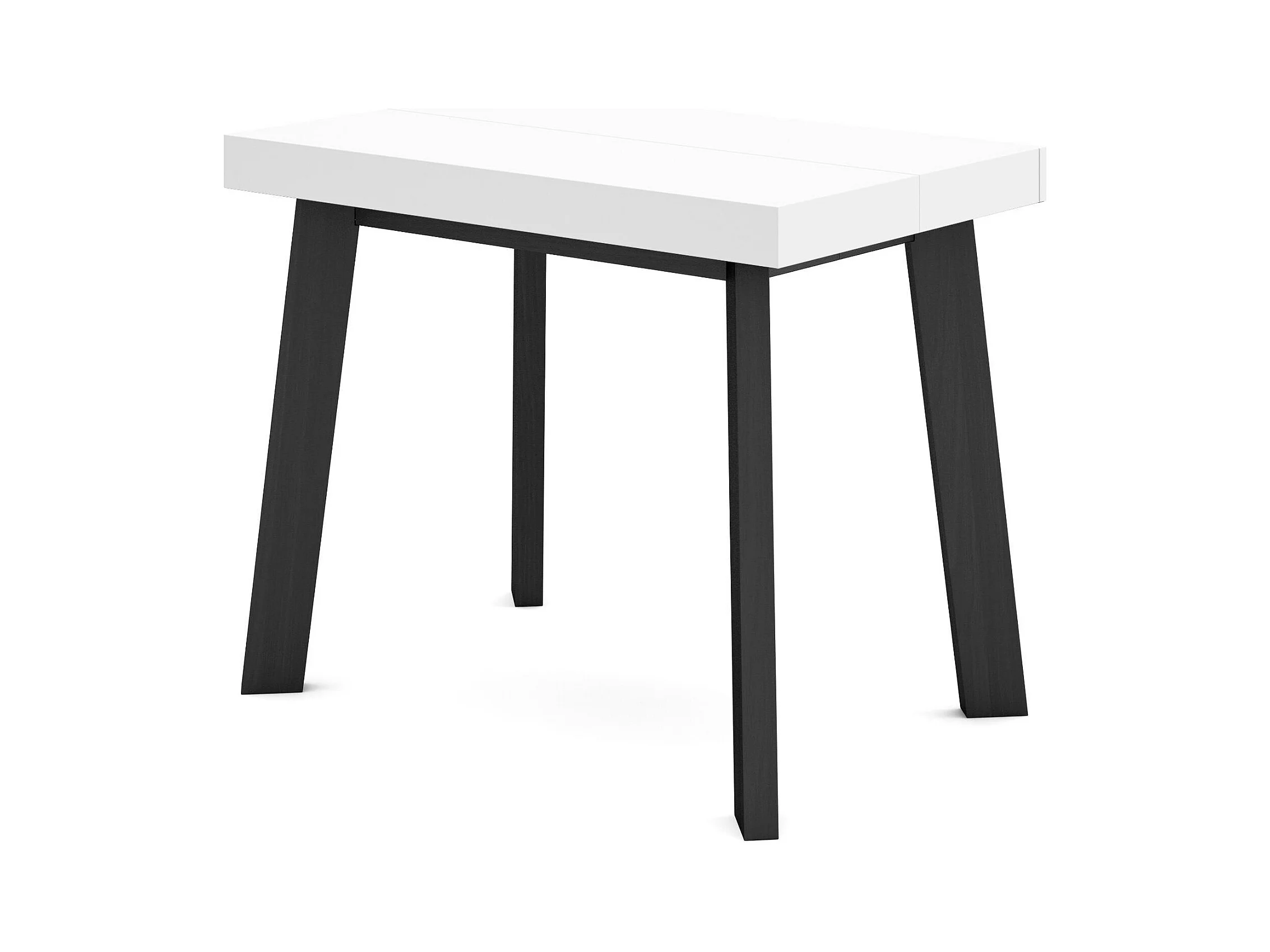 Uitschuifbare Consoletafel, 180x90x73cm, Voor 8 personen, Houten poten, Wit en Zwart
