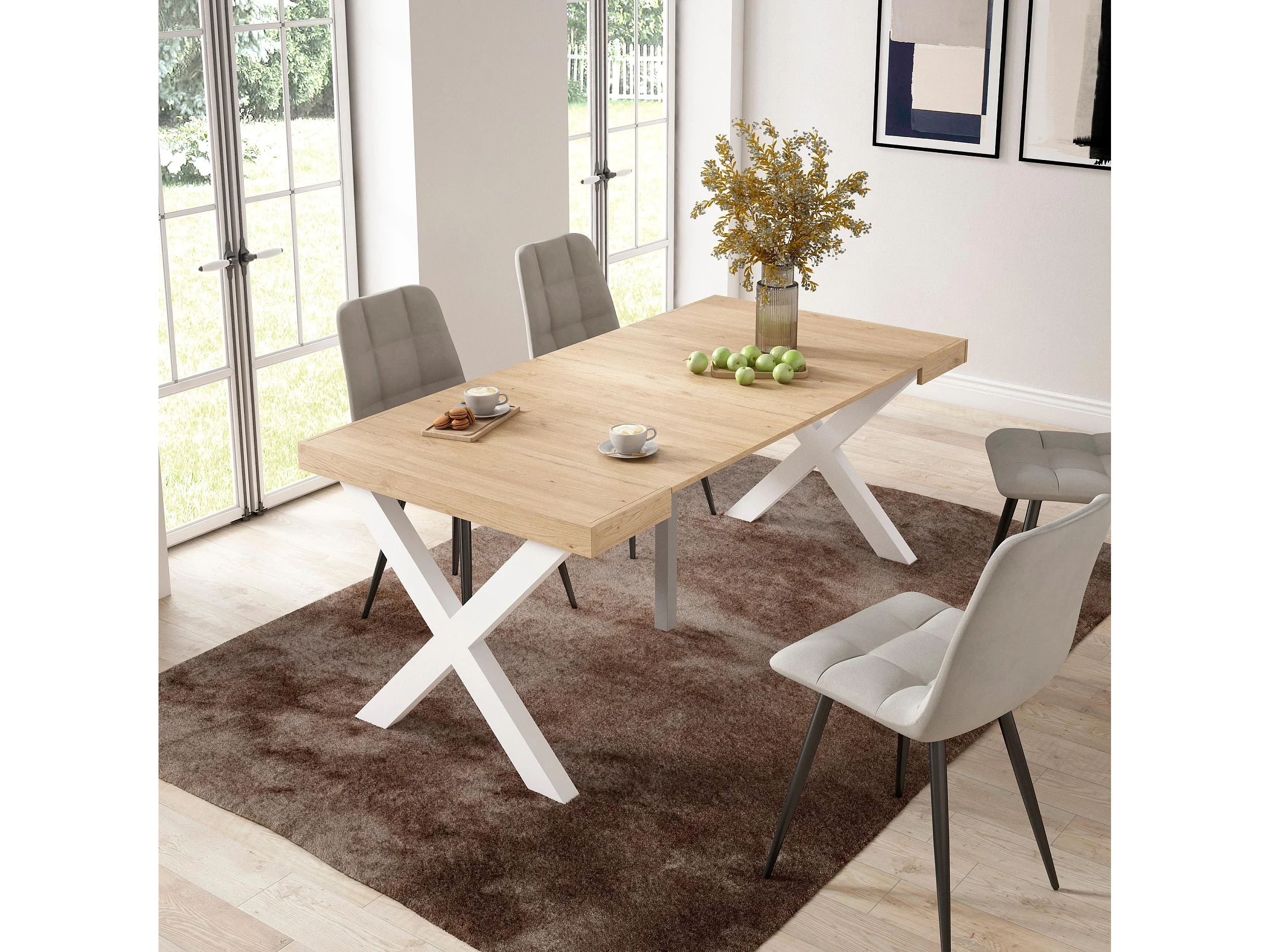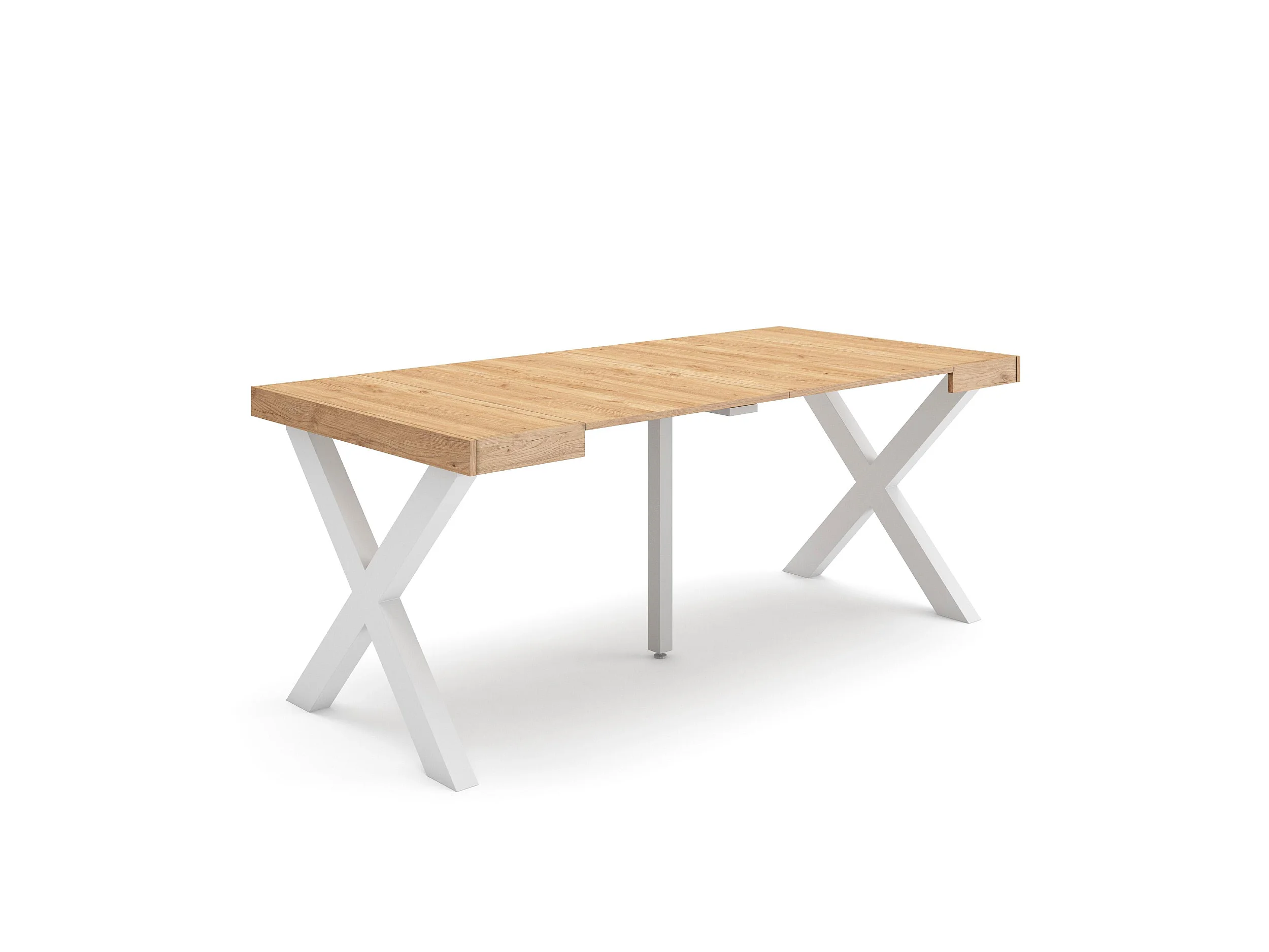 Uitschuifbare Consoletafel, 180x90x73cm, Voor 8 personen, Massief houten poten, Eiken