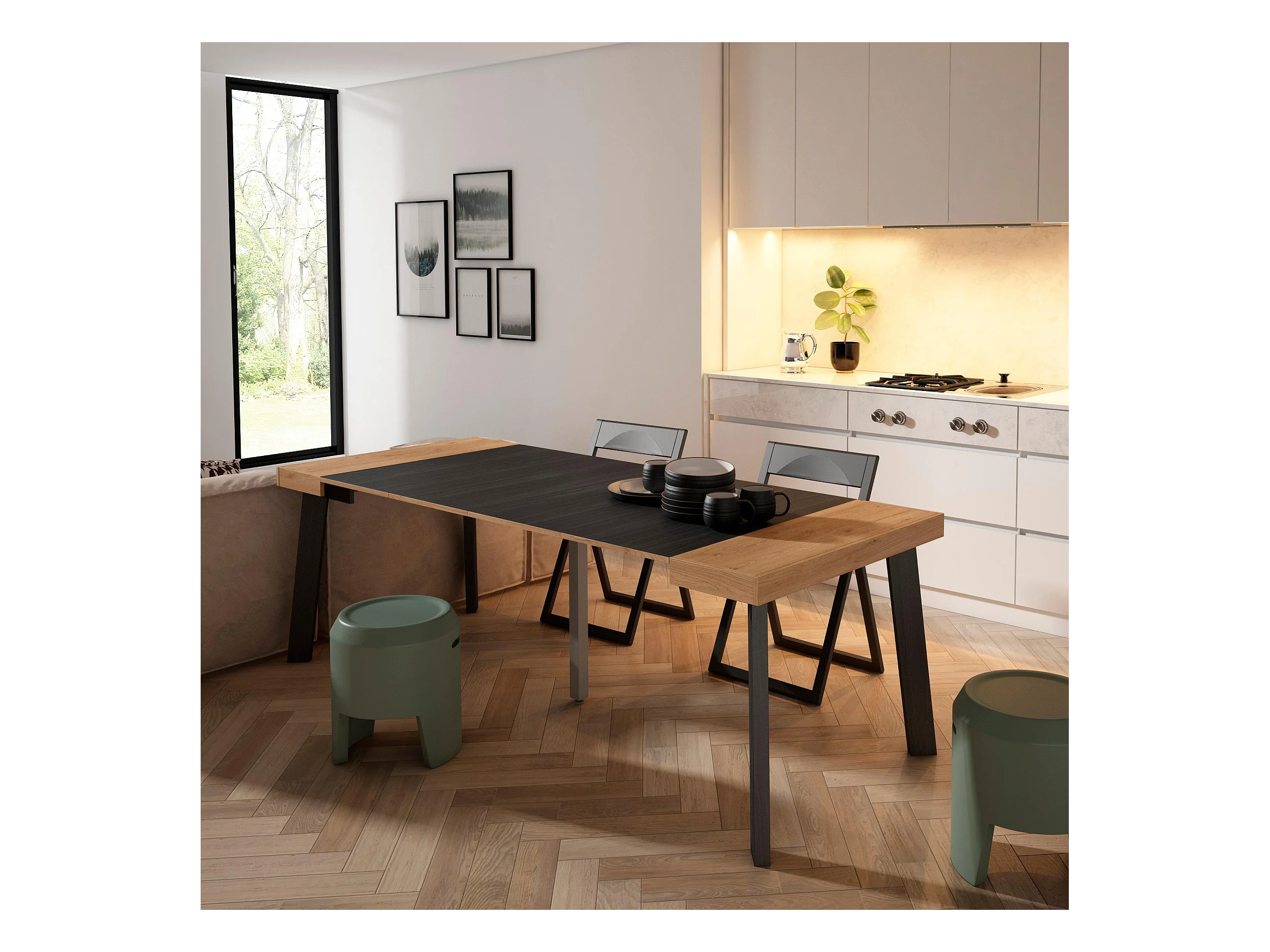 Uitschuifbare Consoletafel, 180x90x73cm, Voor 8 personen, Houten poten, Eiken/Zwart