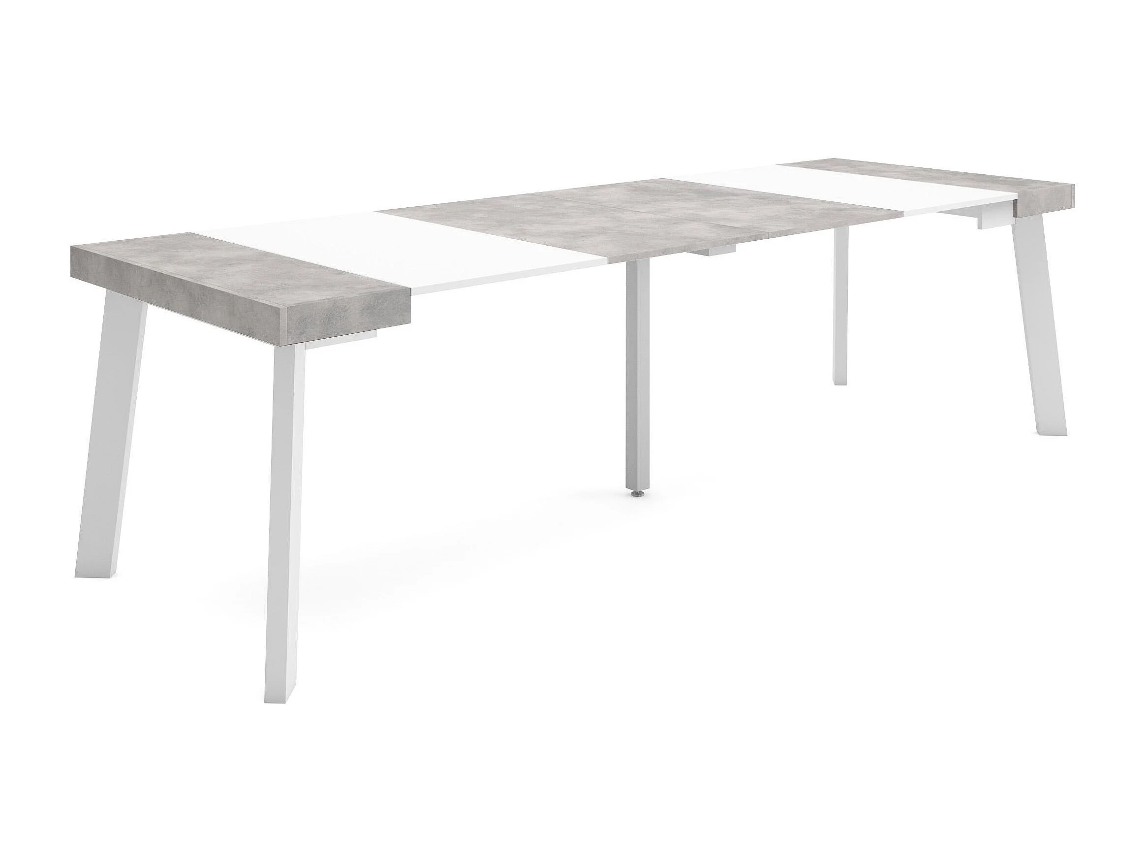 Uitschuifbare Consoletafel, 262x90x73cm, Voor 12 personen, Houten poten, Wit en Cement