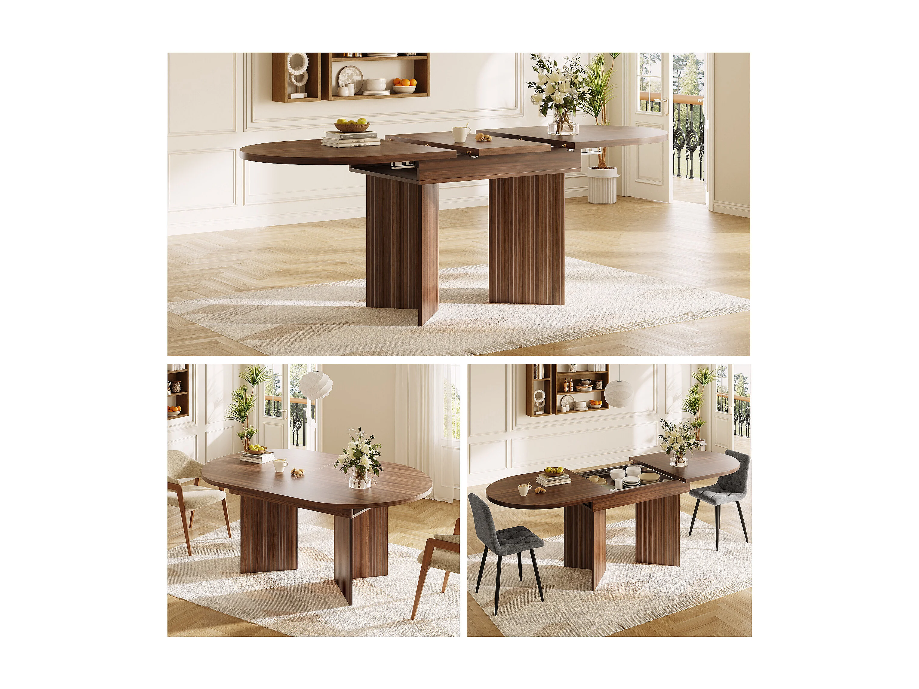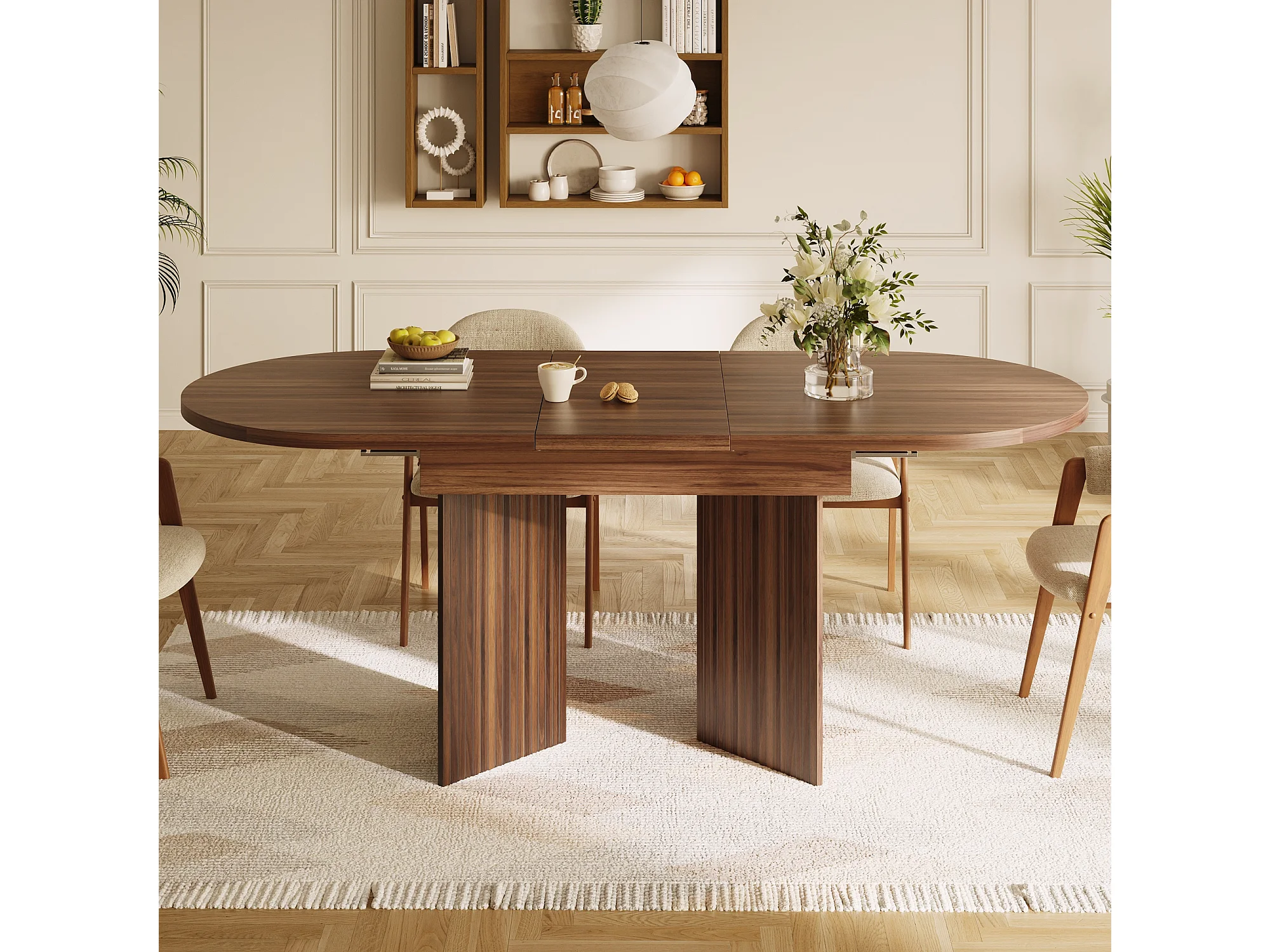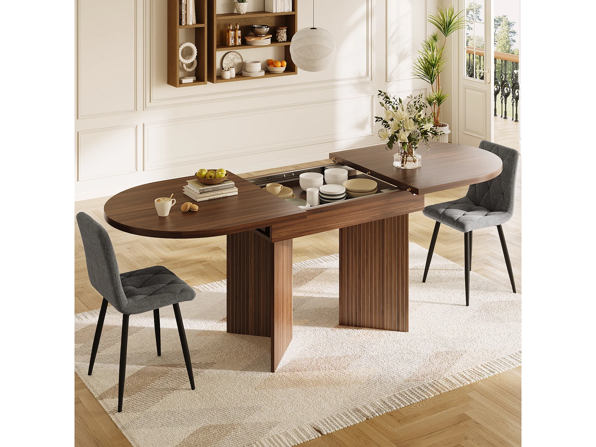Uitschuifbare eettafel - 120/160 x 80 x 75 cm - voor 4 tot 6 personen - eenvoudige stijl - met opbergruimte - MDF - bruin