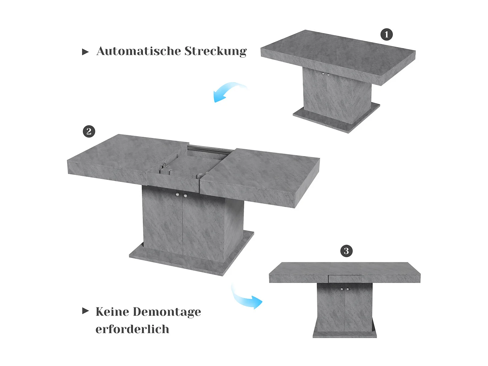 Uitschuifbare eettafel (140/180x80x76cm) - Ruimtebesparend, Multifunctioneel, Betonlook