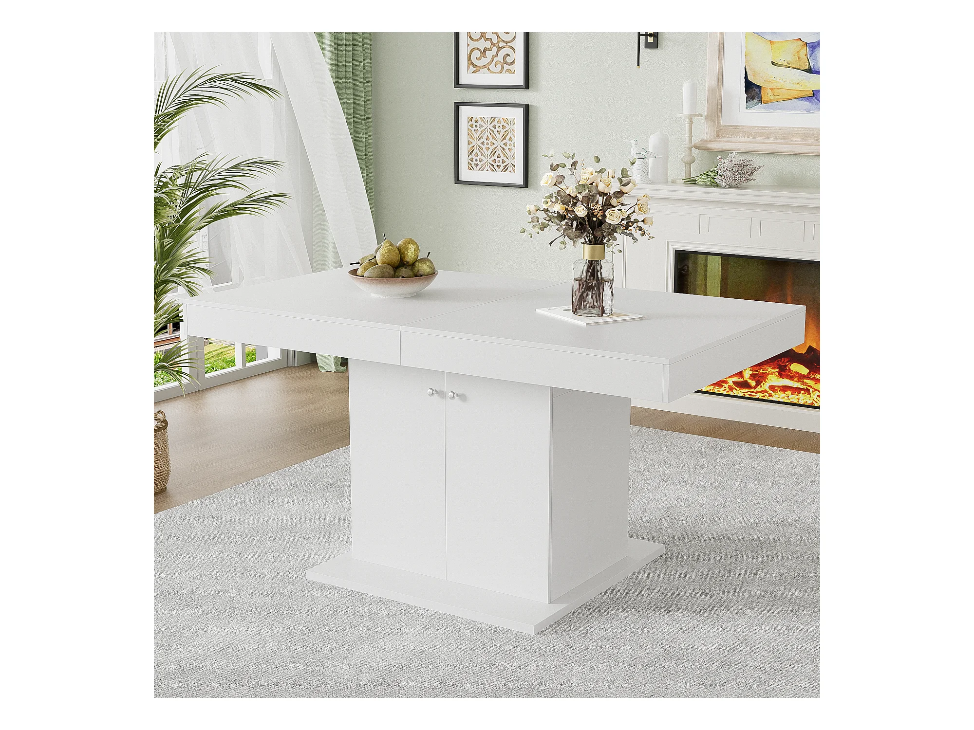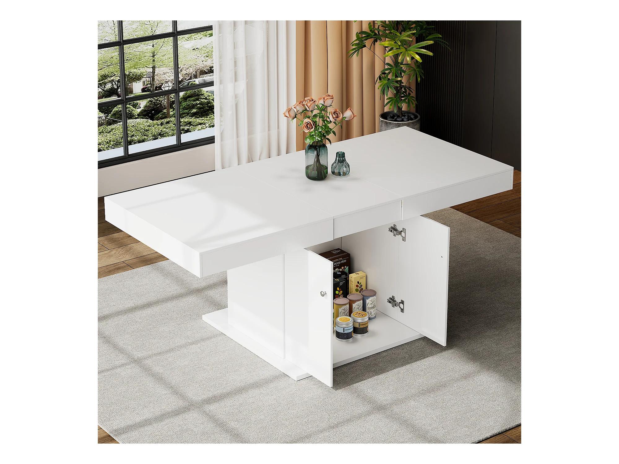 Uitschuifbare eettafel met opbergruimte, automatische functie, spaanplaat, wit, (140/180x80x76 cm)