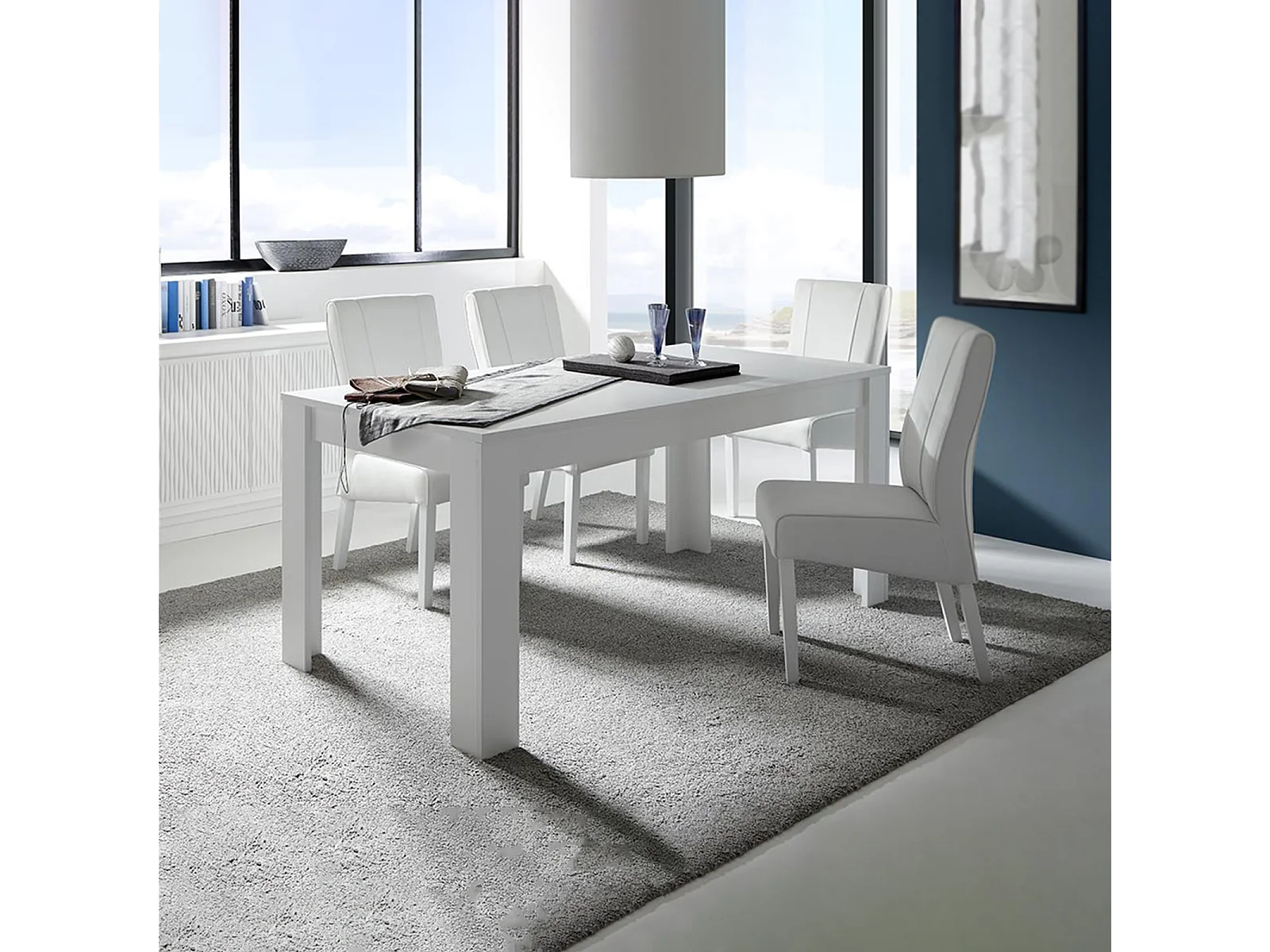 Uitschuifbare eettafel "Sky" in mat wit hout cm 137/185x90 ​​79h