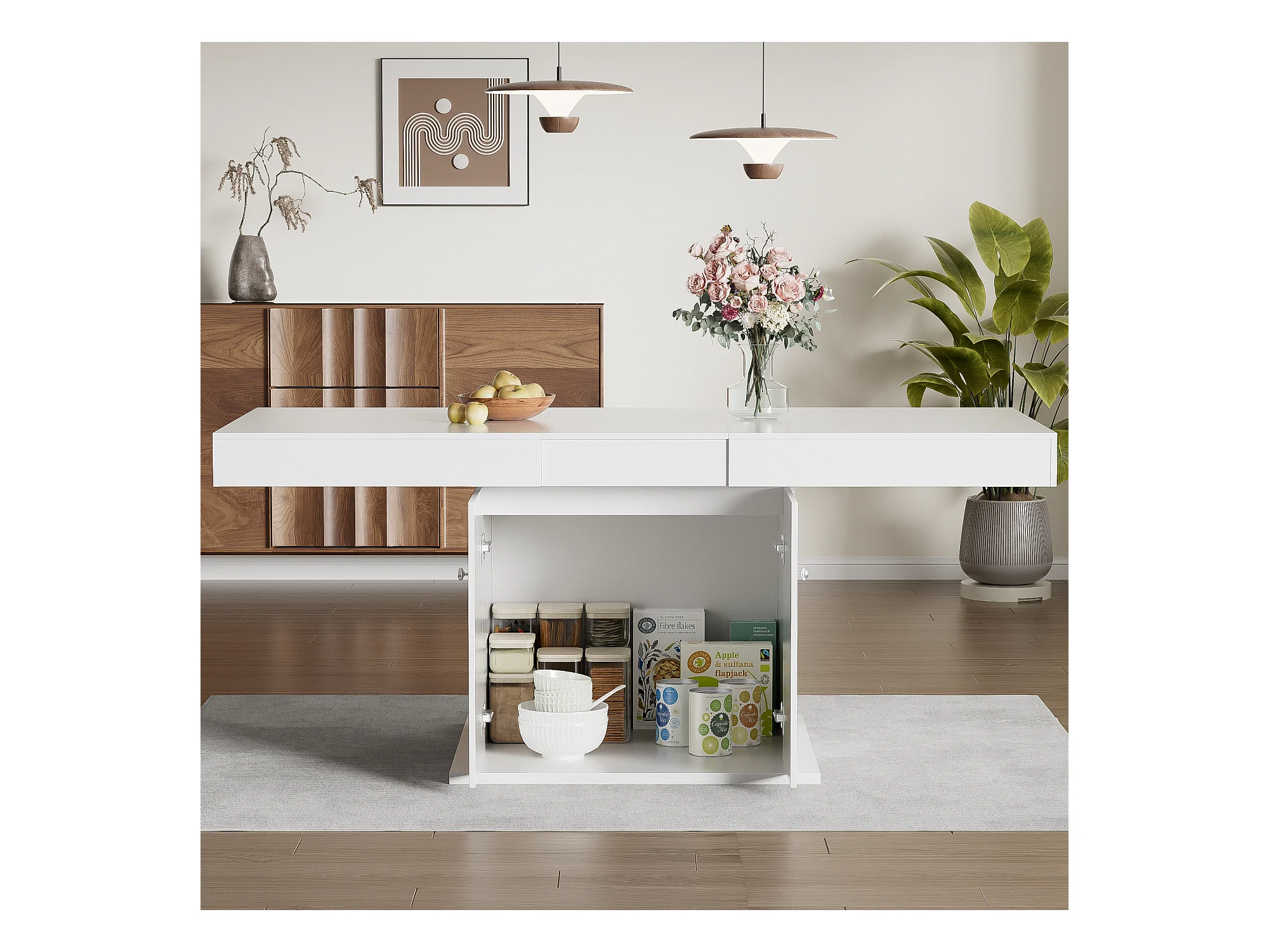 Uitschuifbare eettafel voor 4 tot 6 couverts met kast - L52/132,5xB80xH76cm - Spaanplaat - Wit