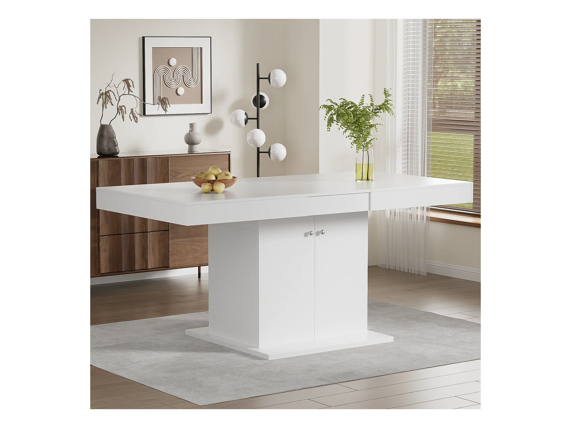 Uitschuifbare eettafel voor 4 tot 6 personen met 2 deuren - 120/160 x 80 x 75 cm - MDF hout - Wit + zilveren poten