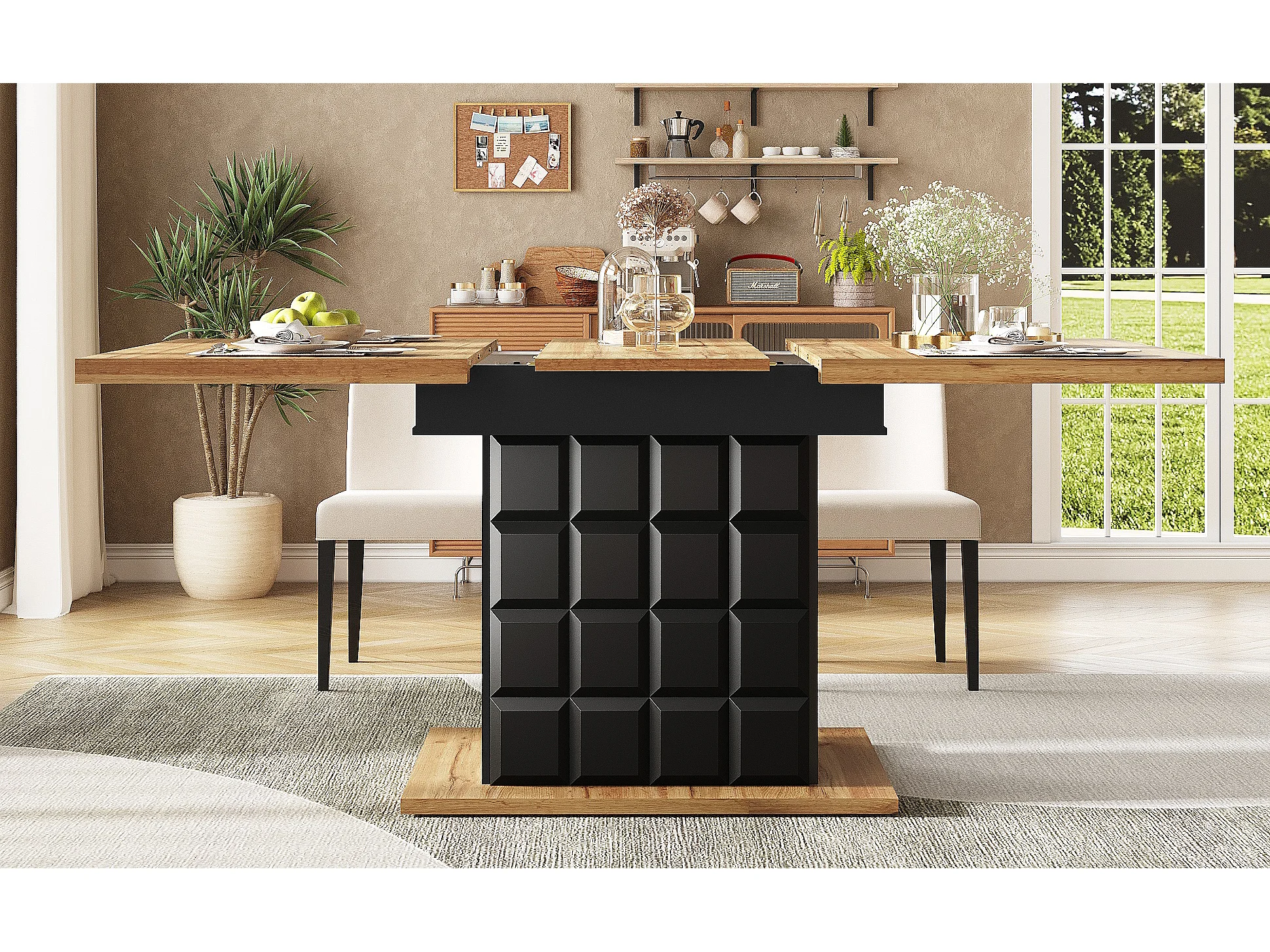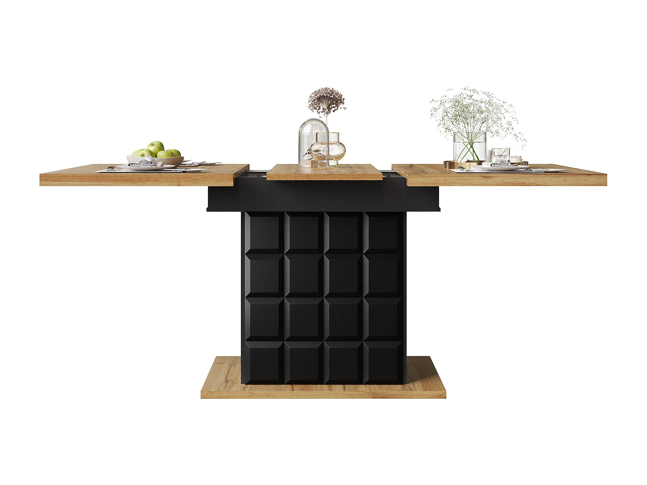 Uitschuifbare eettafel voor 4 tot 6 personen - Geruit patroon met deuren - Zwart en hout