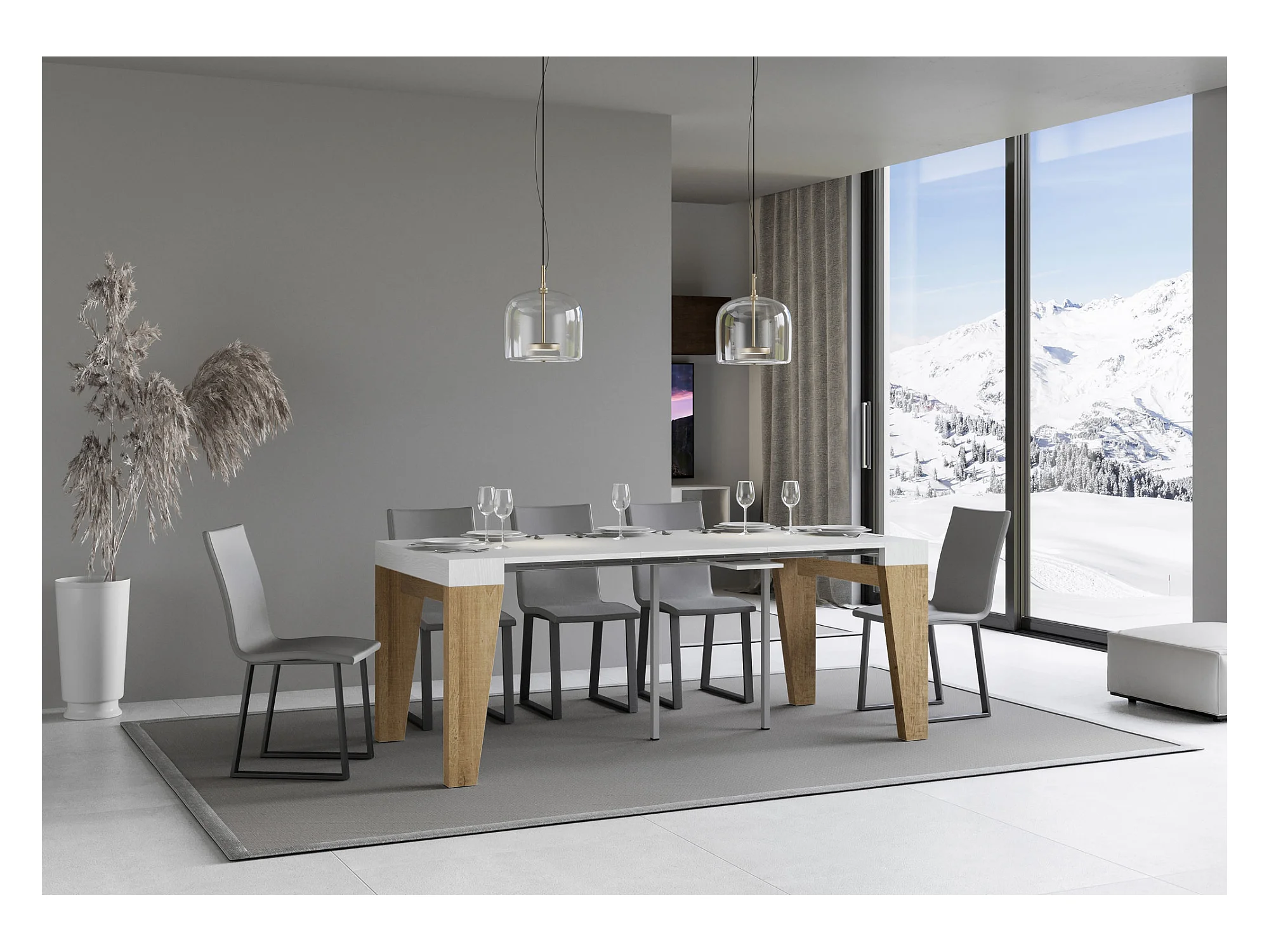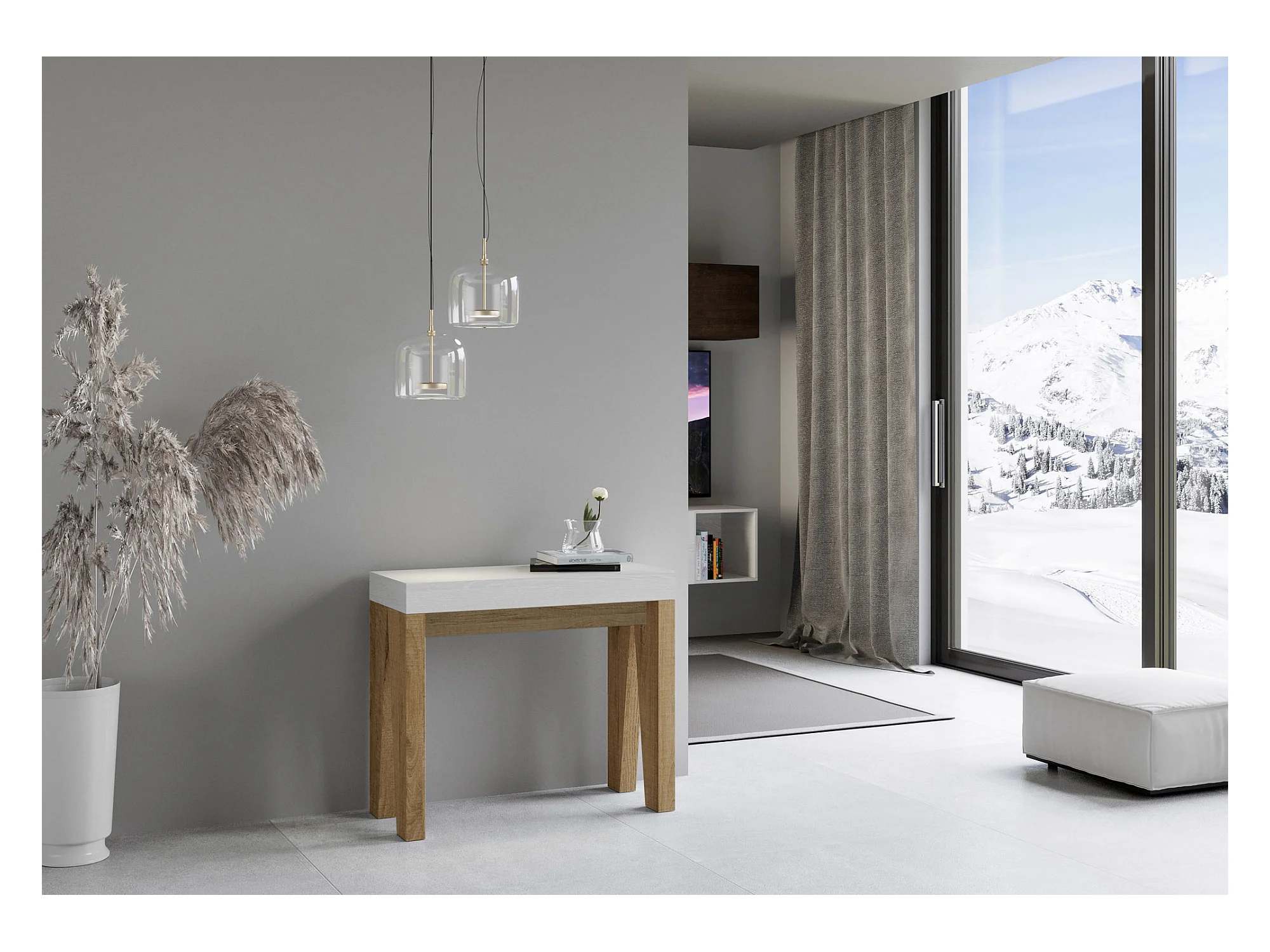 Uitschuifbare console 90x40/196 cm Naxy Mix Small White Ash blad - Nature Oak structuur