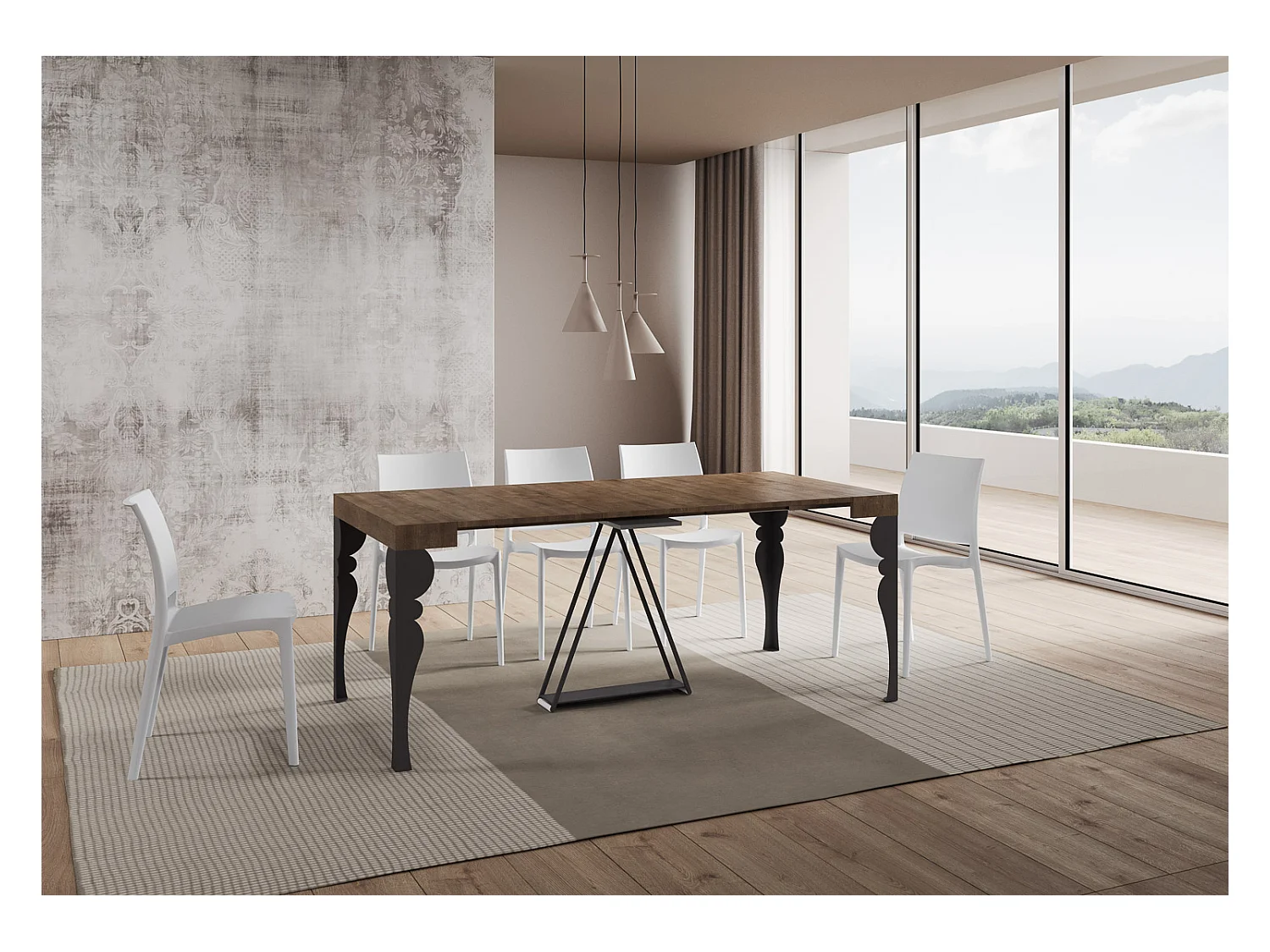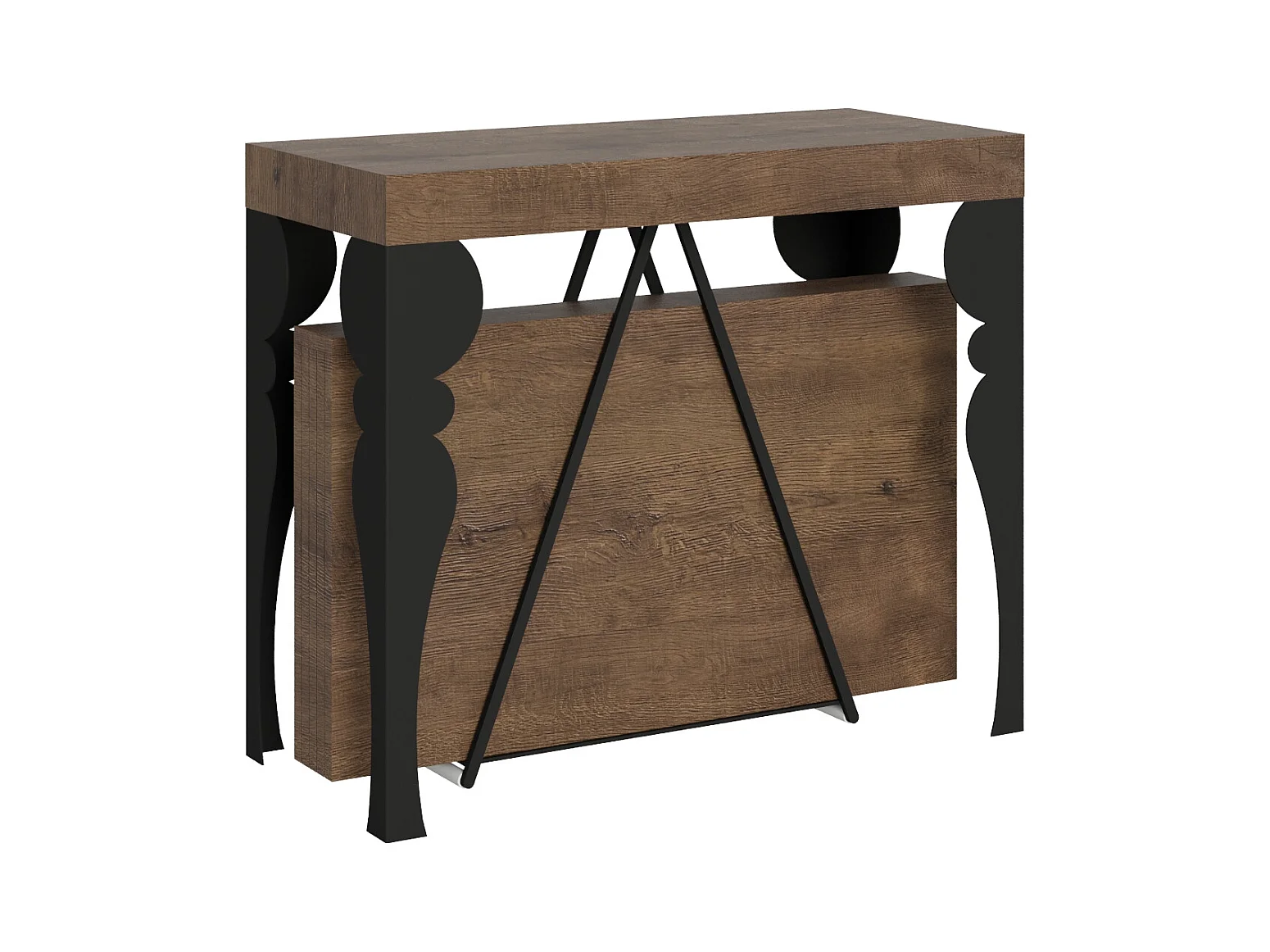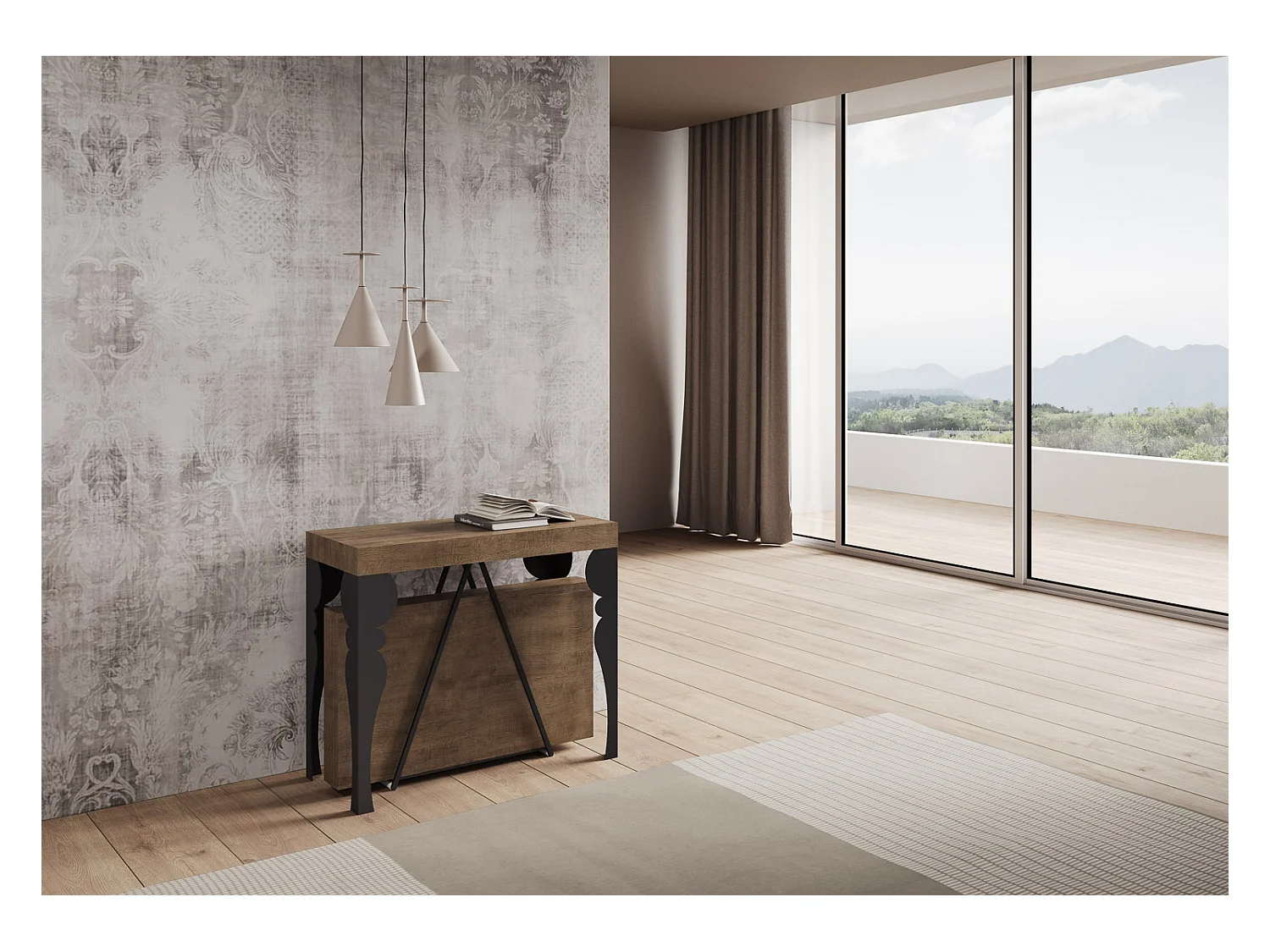 Lona uitschuifbare console van hout en staal 90x40/196 of 90x40/300 cm-Kleur Bruin-Steun 2 voet-Verlengsnoeren 3 dunne verlengingen