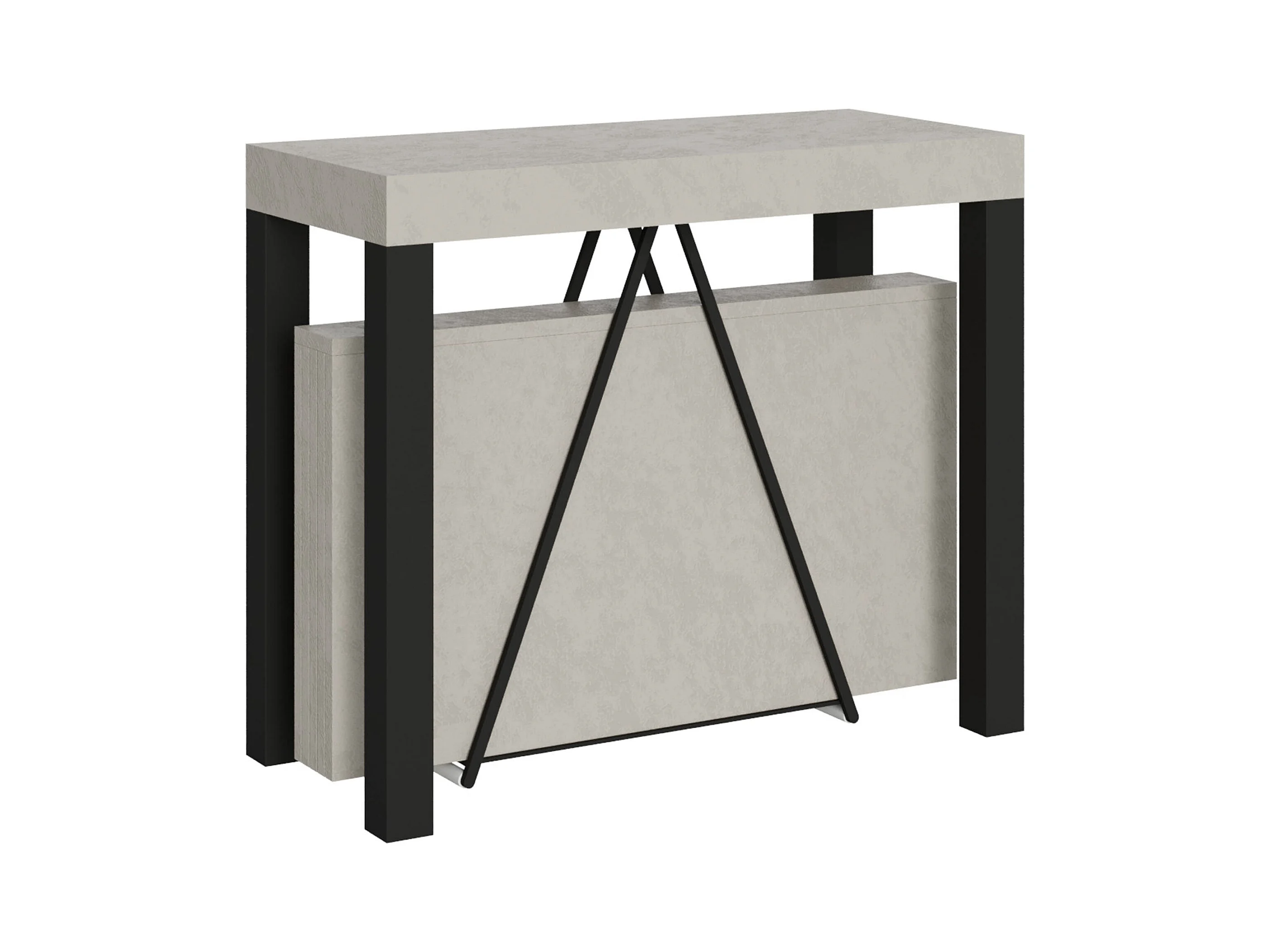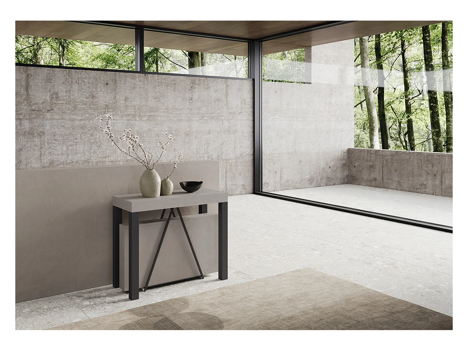 Uitschuifbare console in hout en antraciet staal Elvira 90x40/196 of 90x40/300 cm-Kleur Cementgrijs-Steun 2 voet-Verlengsnoeren 3 uitbreidingen