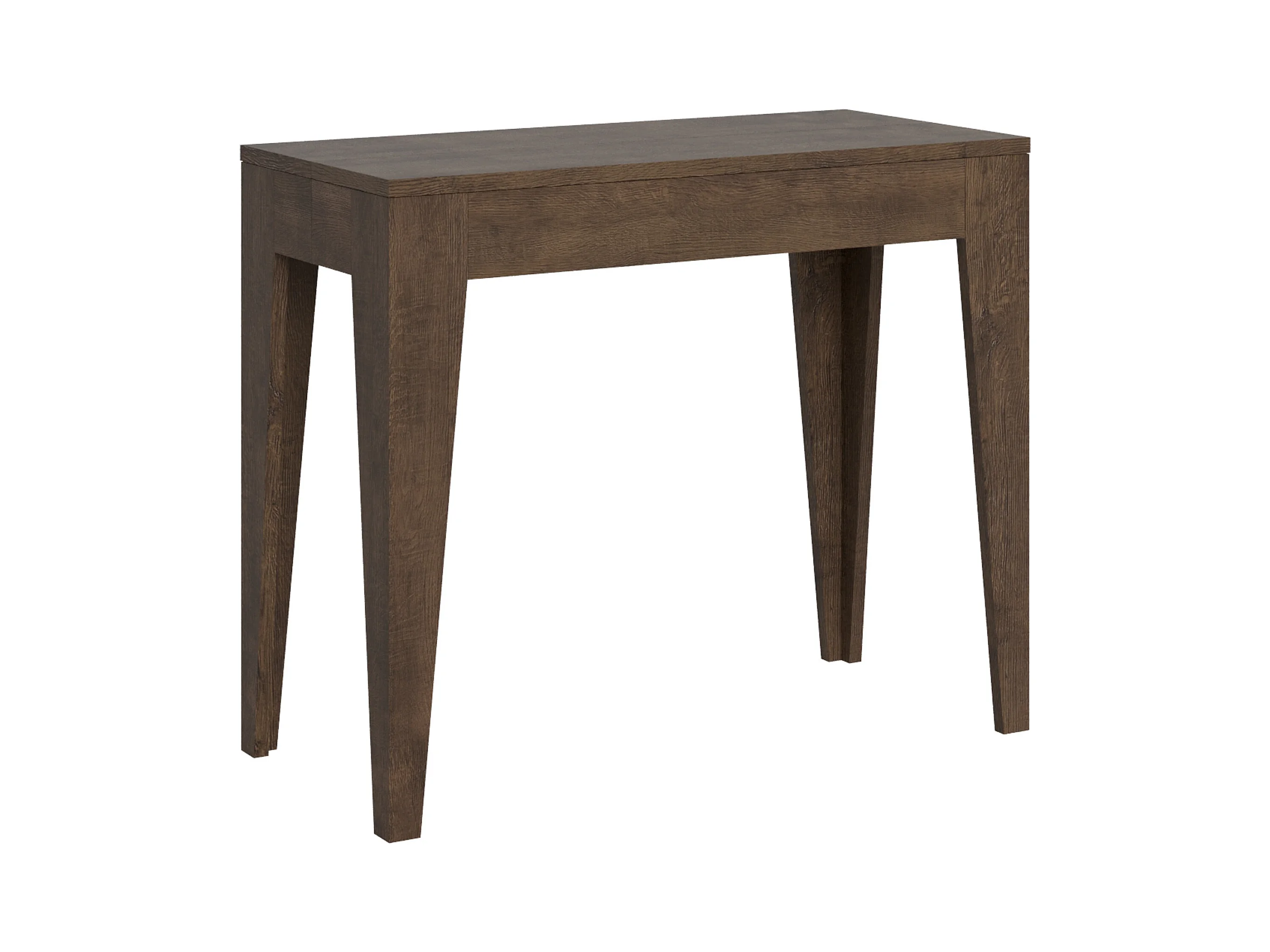 Moderne houten uitschuifbare console 90x40/196 of 90x40/300 cm Naxo-Kleur Bruin-Steun 2 voet-Verlengsnoeren 3 uitbreidingen