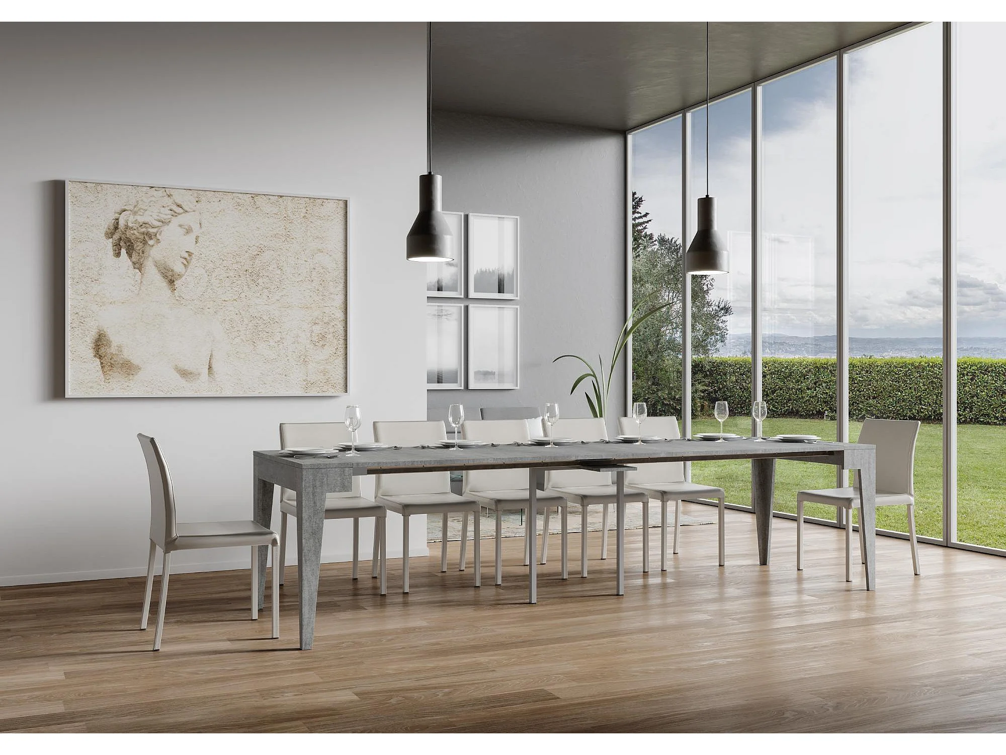 Uitschuifbare sidetable 90x42/302 cm Isotta cement