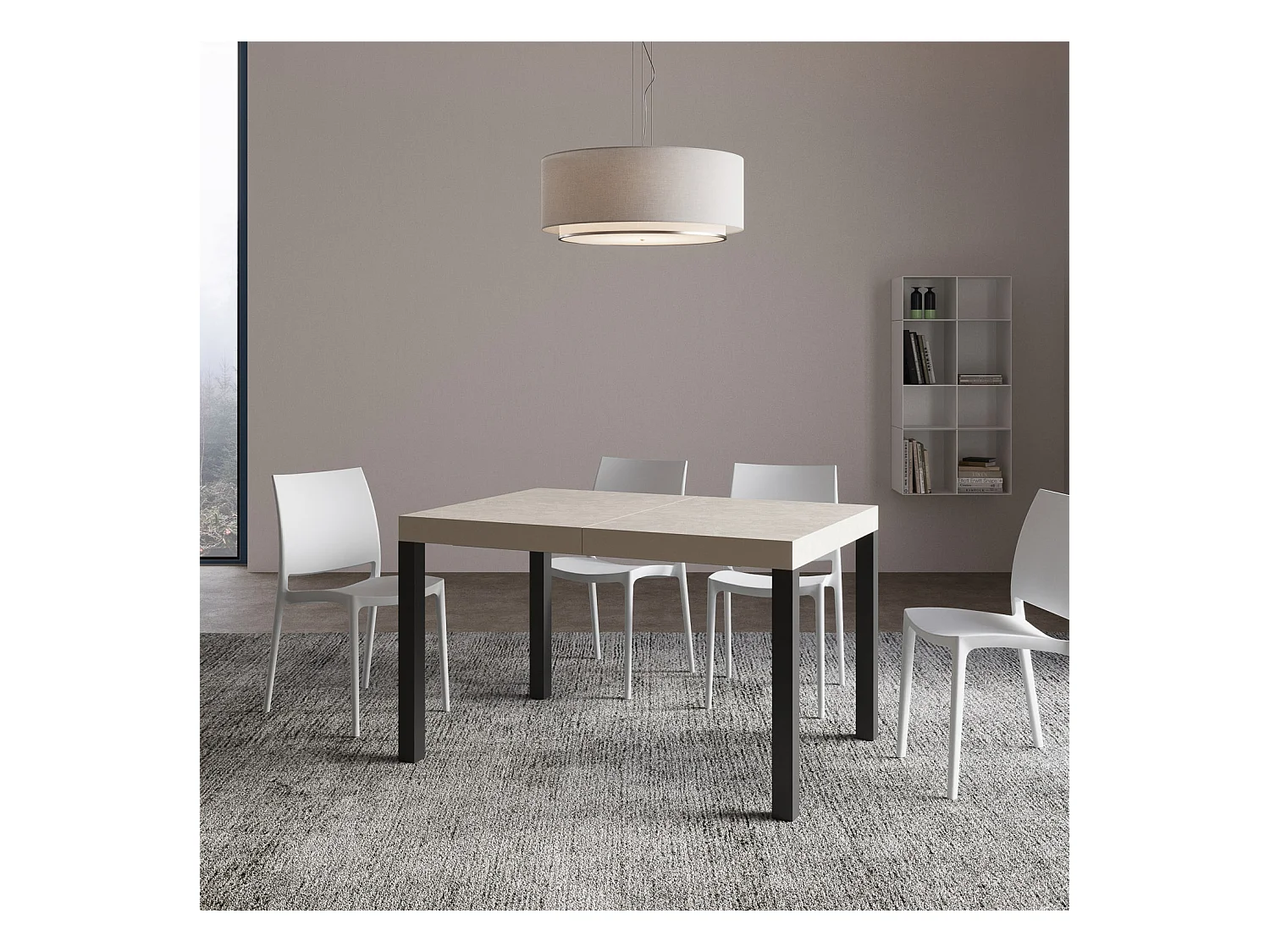 Volantis Premium uitschuifbare tafel 120/224x90 cm betonwitte poten