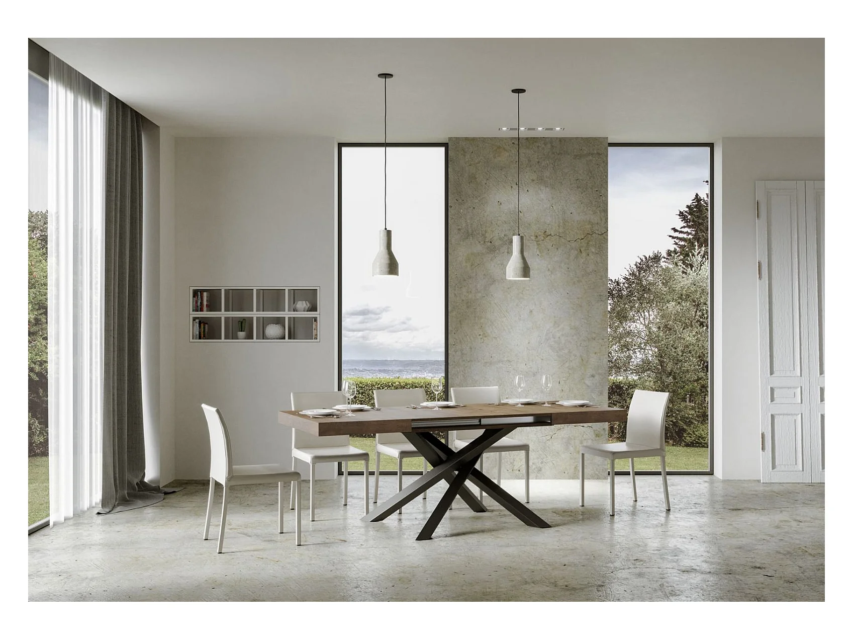 Uitschuifbare tafel 90x120/380 cm Volantis walnoot wit frame
