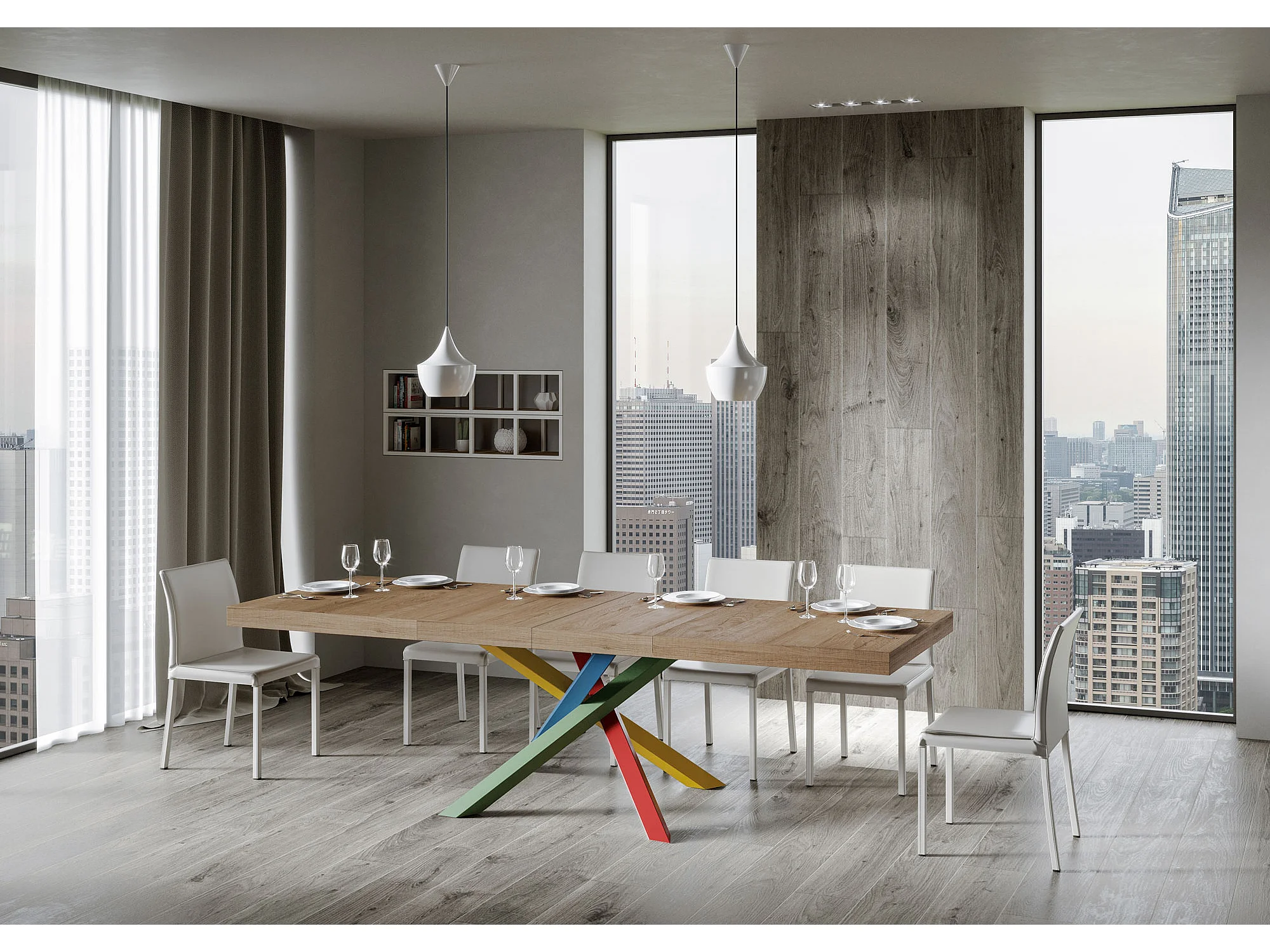 Uitschuifbare tafel 120/380x90 cm Volantis Premium naturel eiken meerkleurige poten 4/B