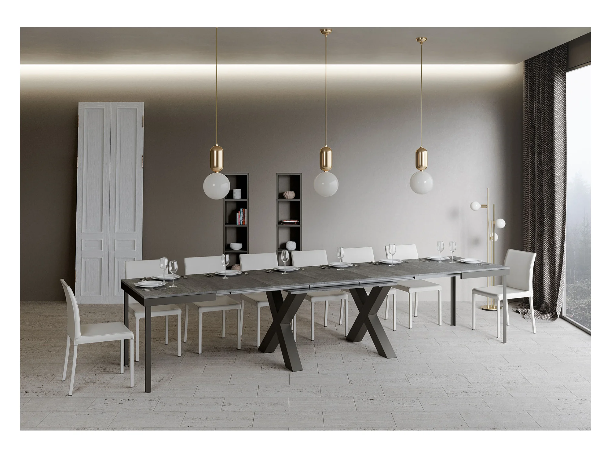 Uitschuifbare tafel 180/440x90 cm Vlam kasjmier antraciet poten