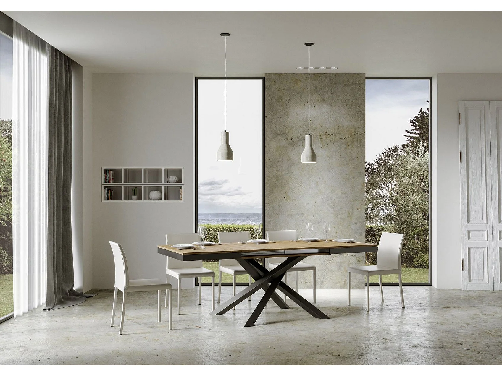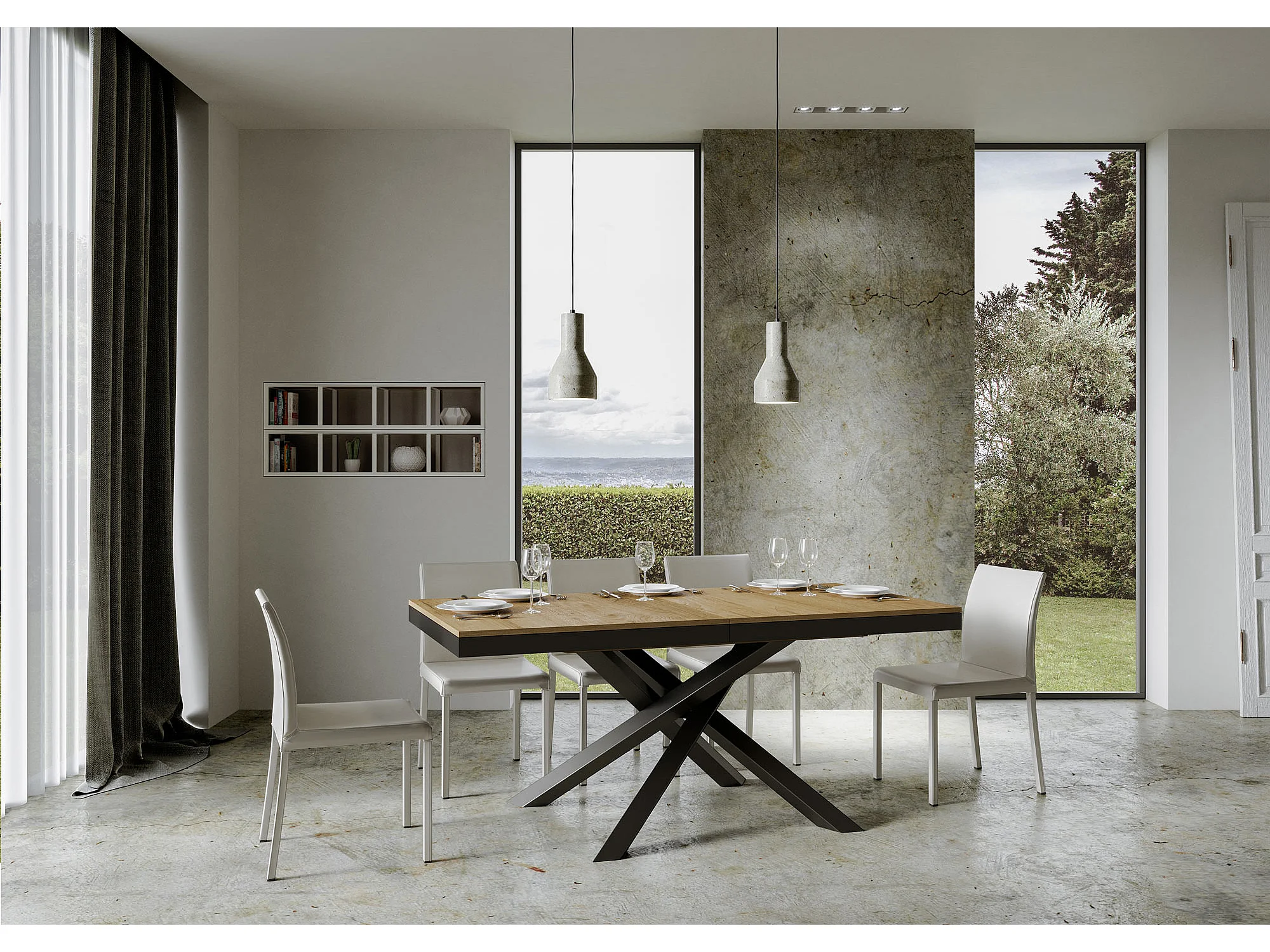 Uitschuifbare tafel 180/440x90 cm Volantis Evolution natuur eiken met antraciet frame en poten
