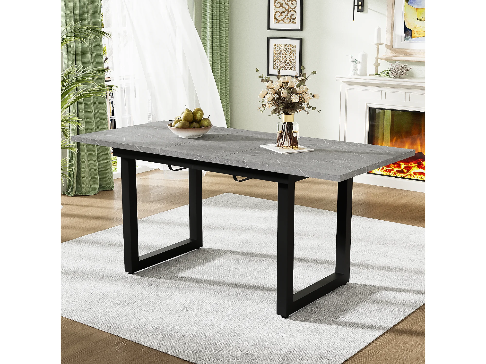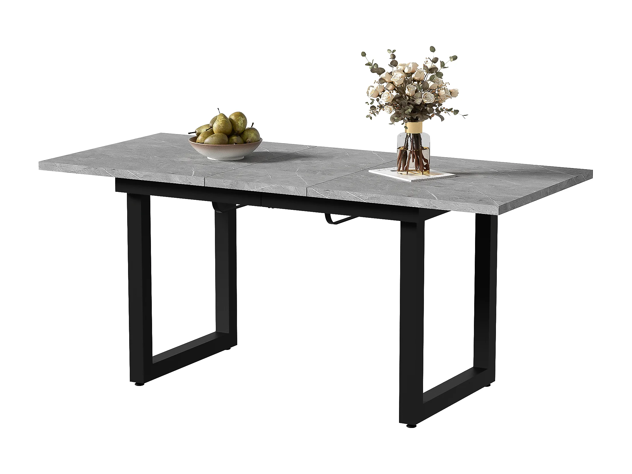 Uitschuifbare tafel, MDF en metaal, industriële stijl, 140/180x80x75 cm, modern design, betonlook + zwart (L140/180xD80xH75cm)
