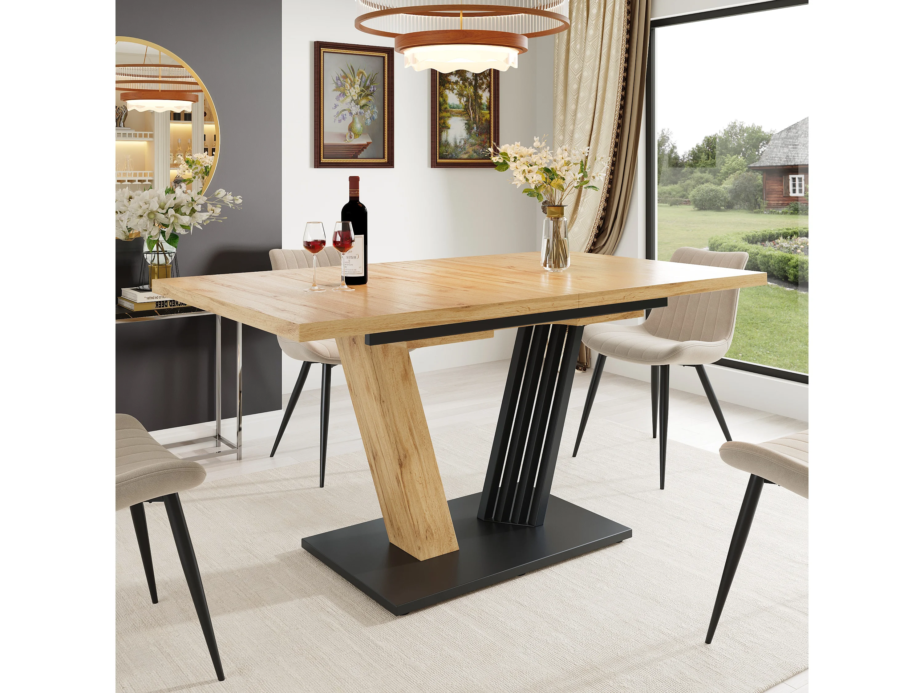 Uitschuifbare tafel met blad in houtnerfstructuur, 120-160x80x76 cm - MDF-hout - Licht naturel en zwart