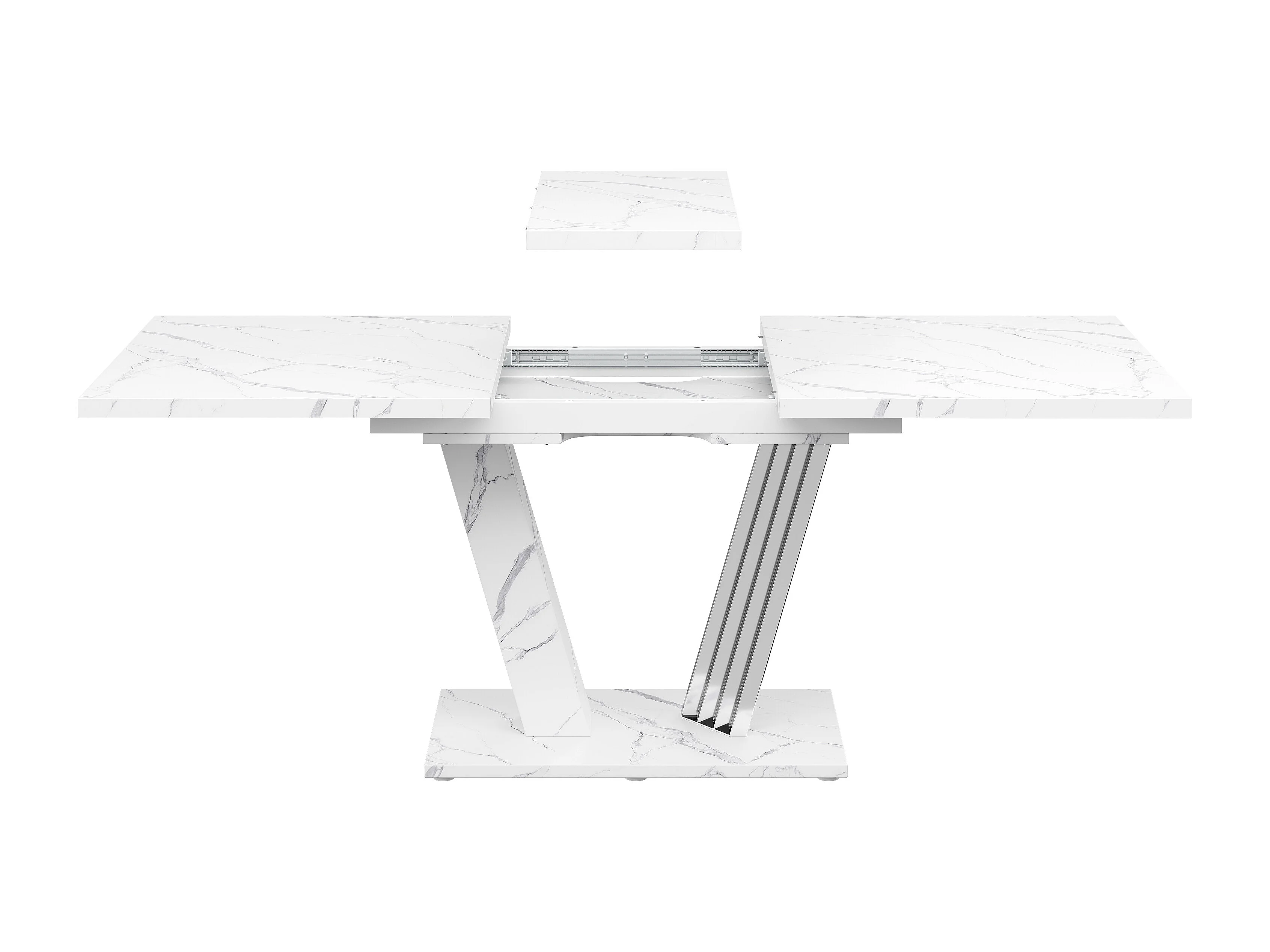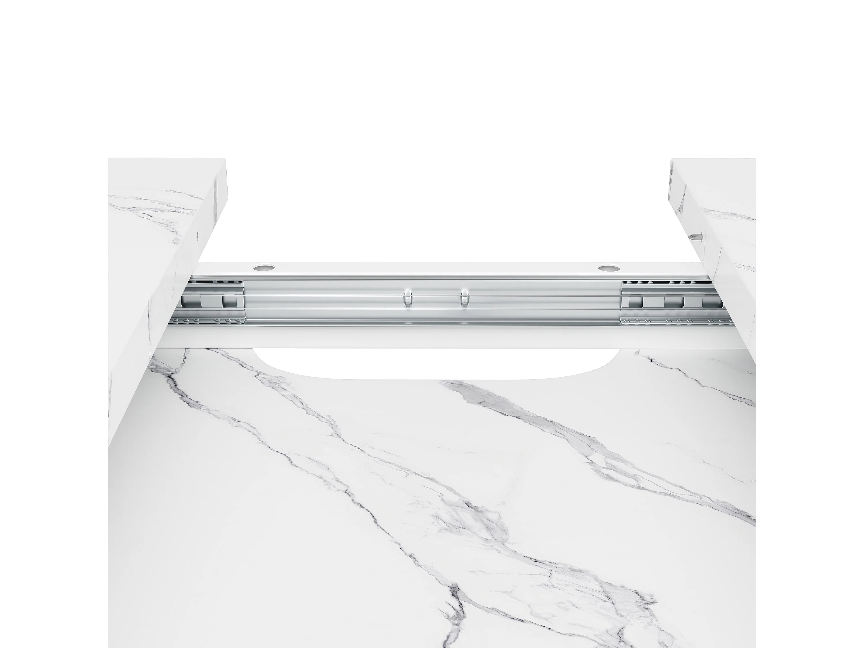 Uitschuifbare tafel met blad in marmerlook, 120-160x80x76 cm - MDF-hout - Wit