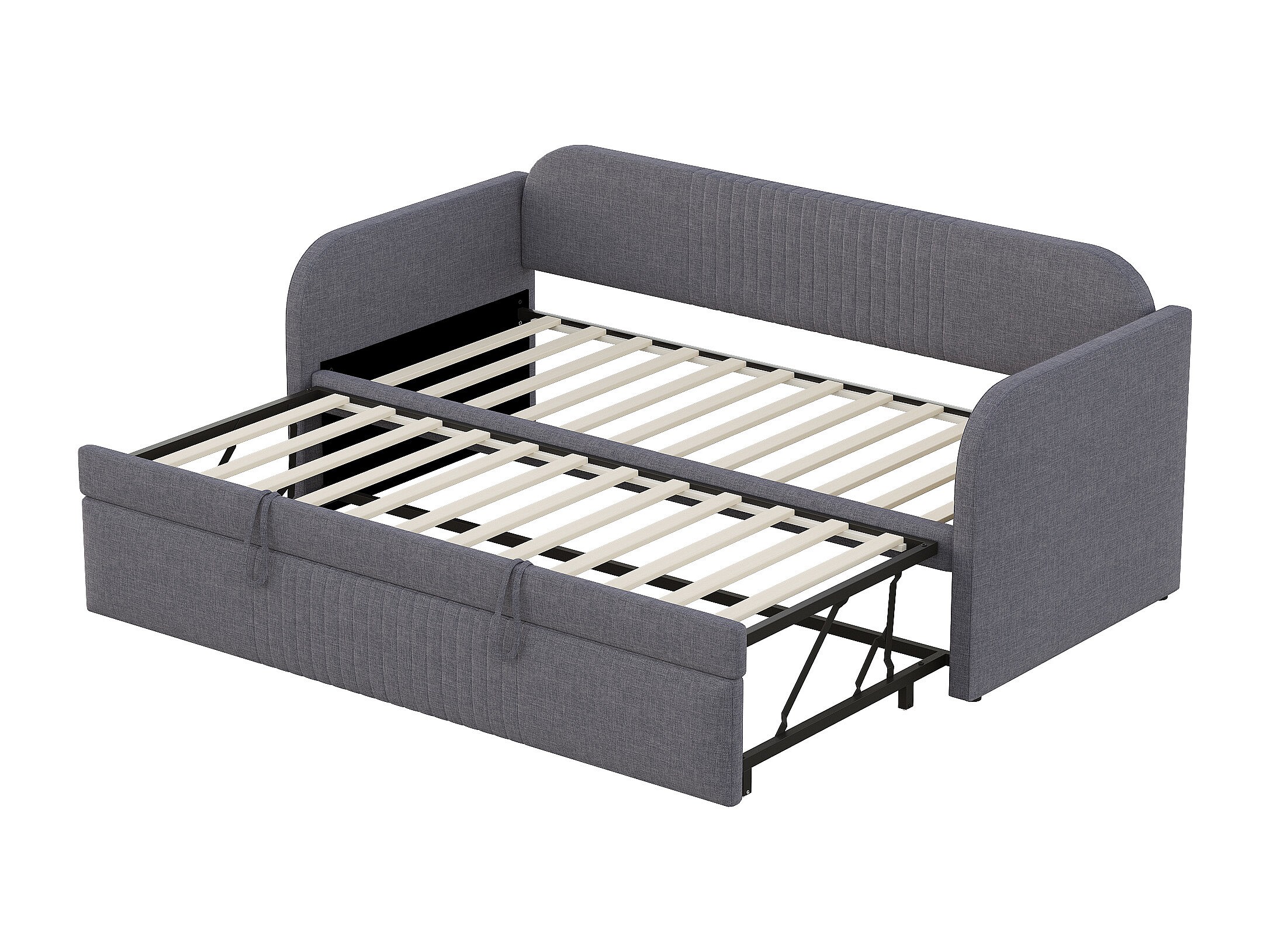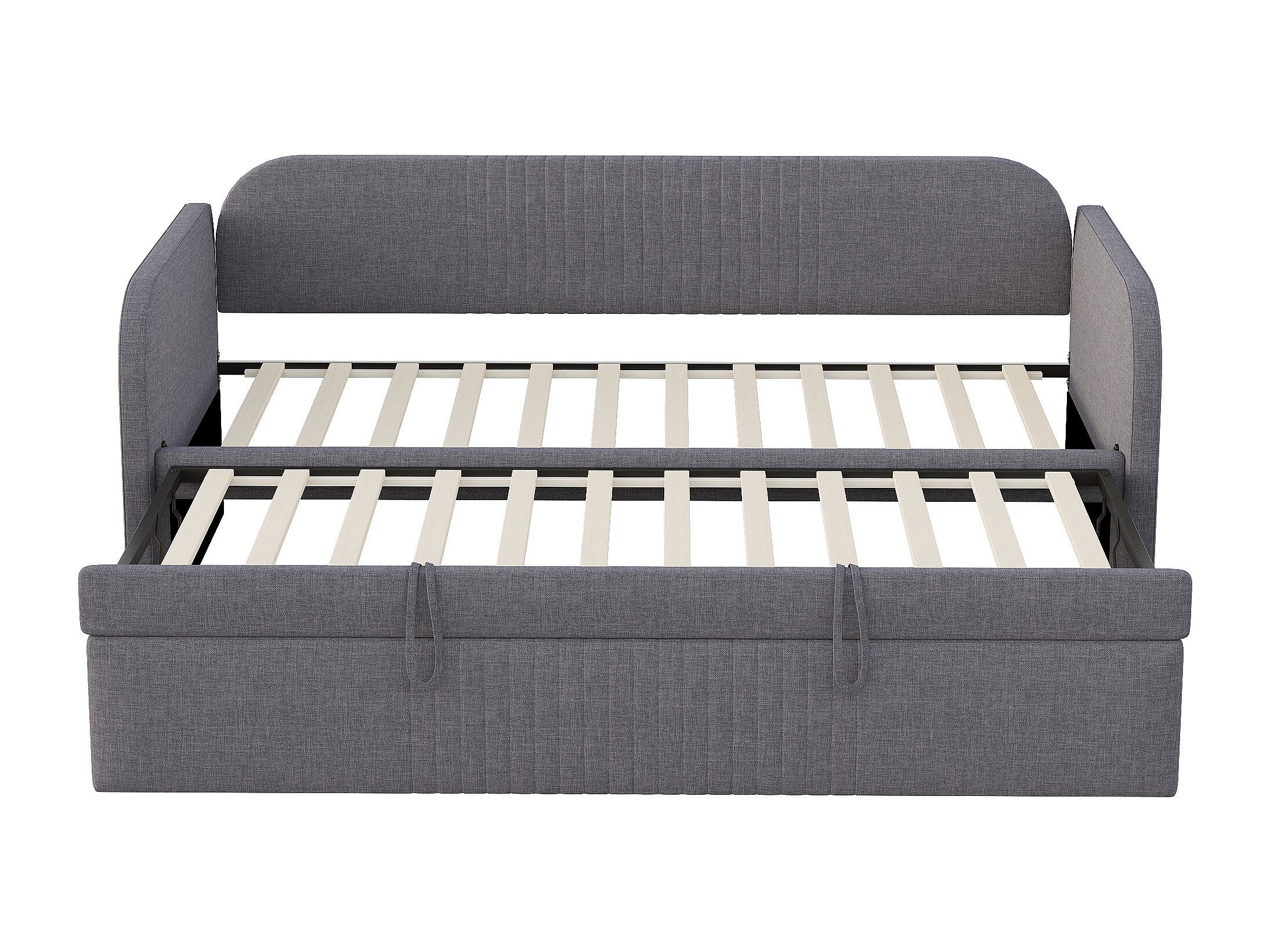 Uitschuifbed 90/180 x 190 cm - Tweepersoonsbed met rugleuning en armleuningen - grijs linnen