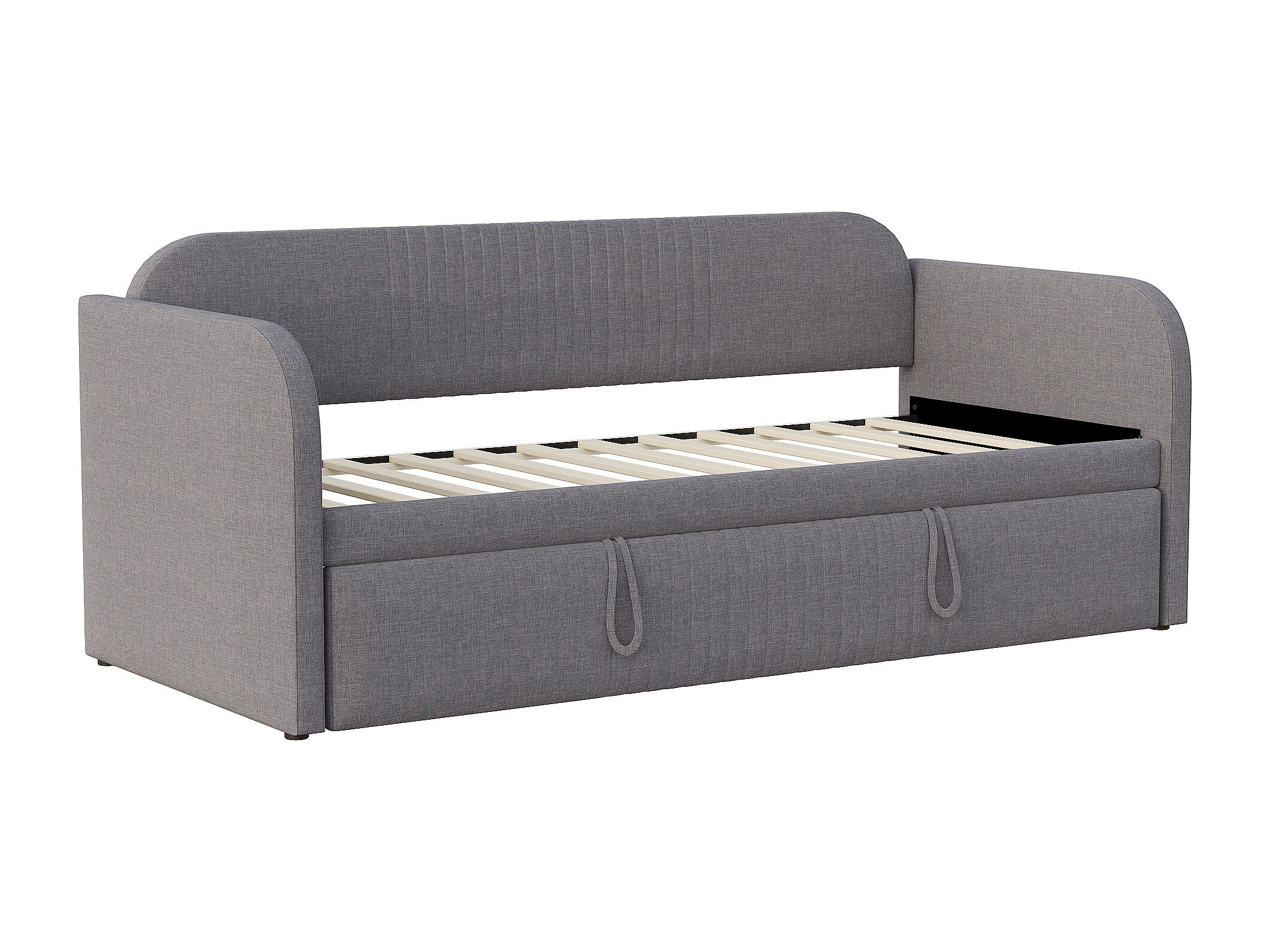 Slaapbank onderschuifbed en matrassen 90x190 cm stof lichtgrijs