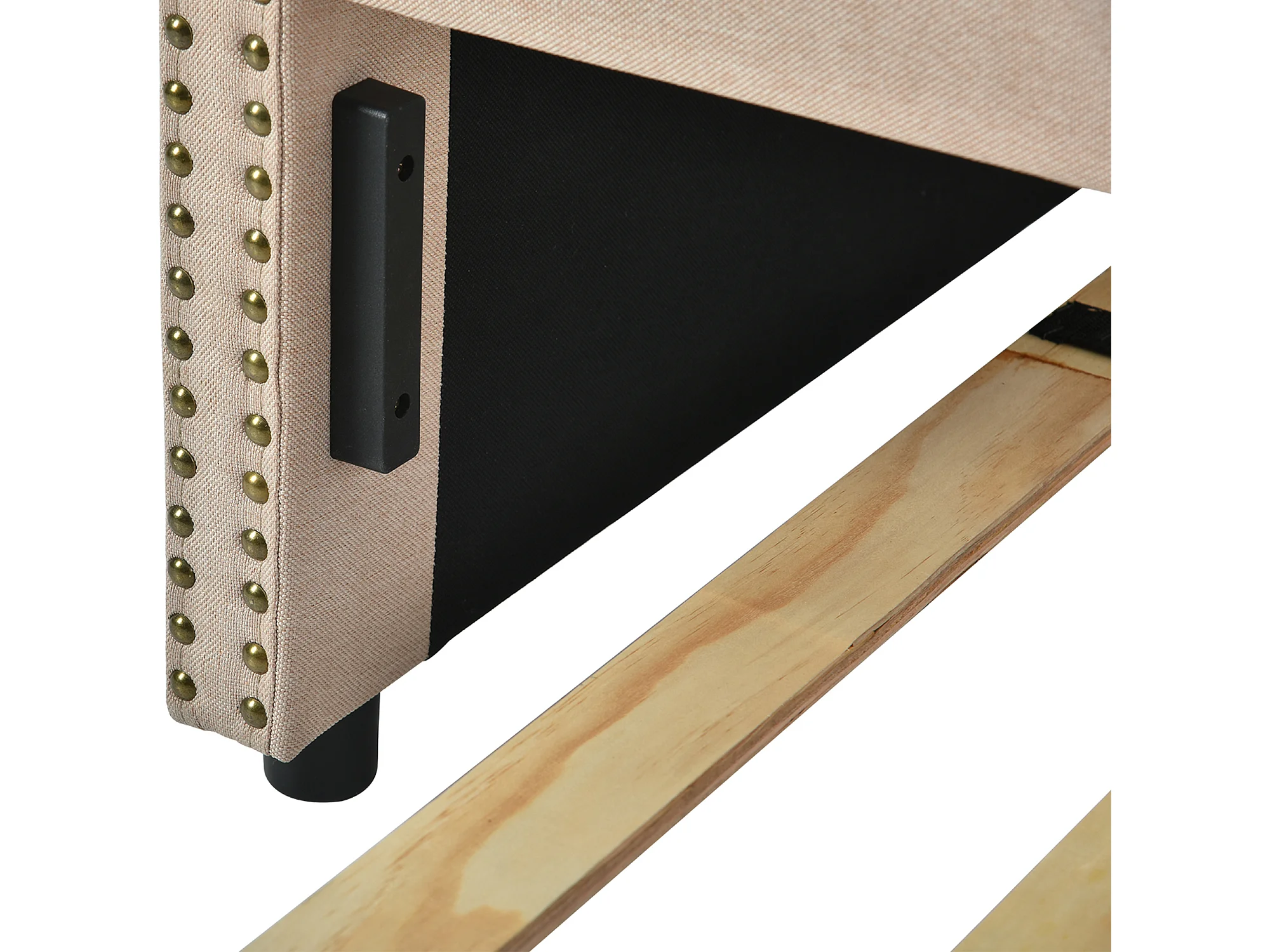 Uitschuifbed 90 x 200 cm - Kinderbed met rugleuning en armleuningen - beige linnen - zonder matras